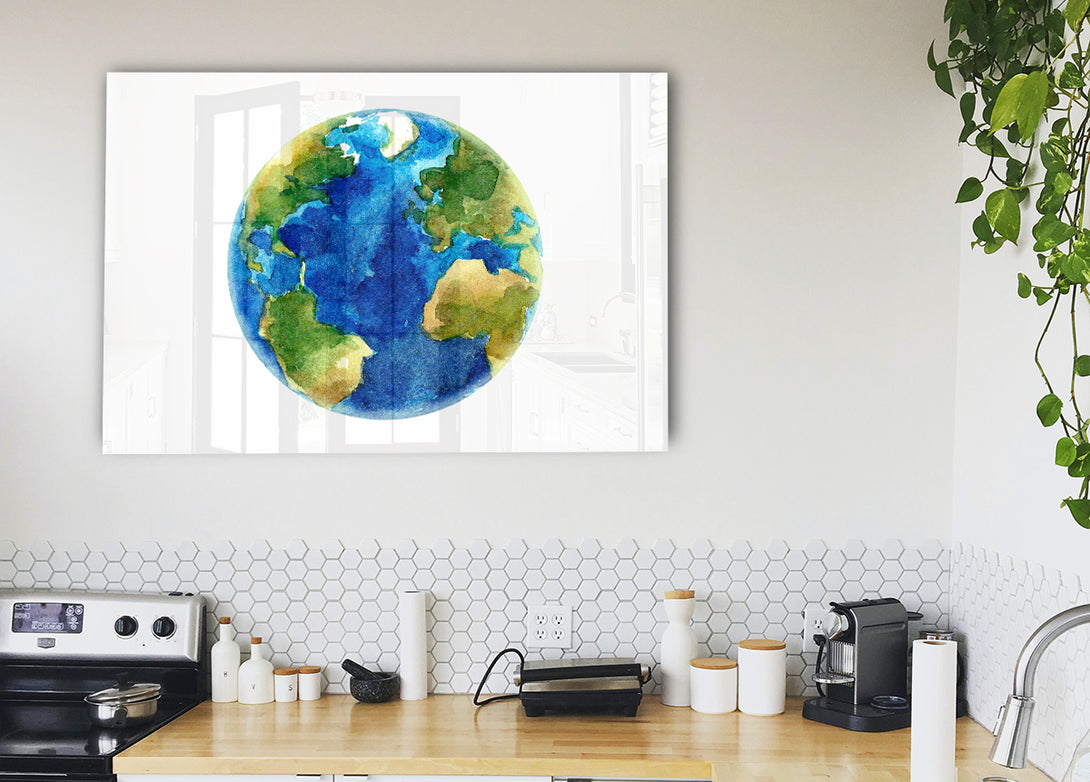 Our Planet acrylic print, UV printed onto 5mm thick acrylic glass. Comes with everything you need to hang on your wall.