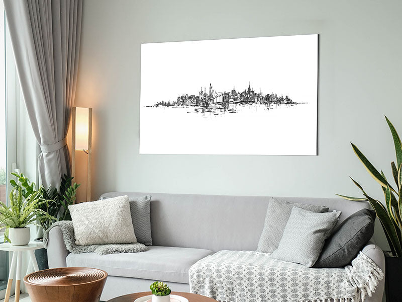 Outline Of The Big Apple Printed on brushed aluminium dibond. A modern way to display art and easy to maintain.