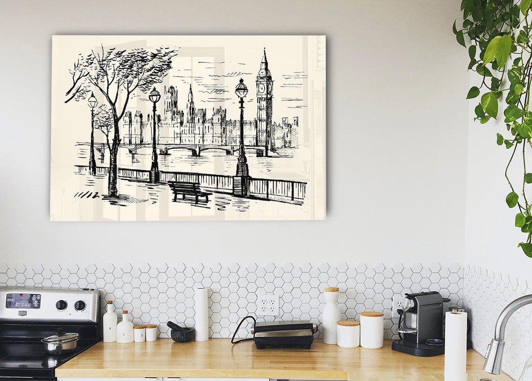 Outline Of The Houses Of Parliament acrylic print, UV printed onto 5mm thick acrylic glass. Comes with everything you need to hang on your wall.