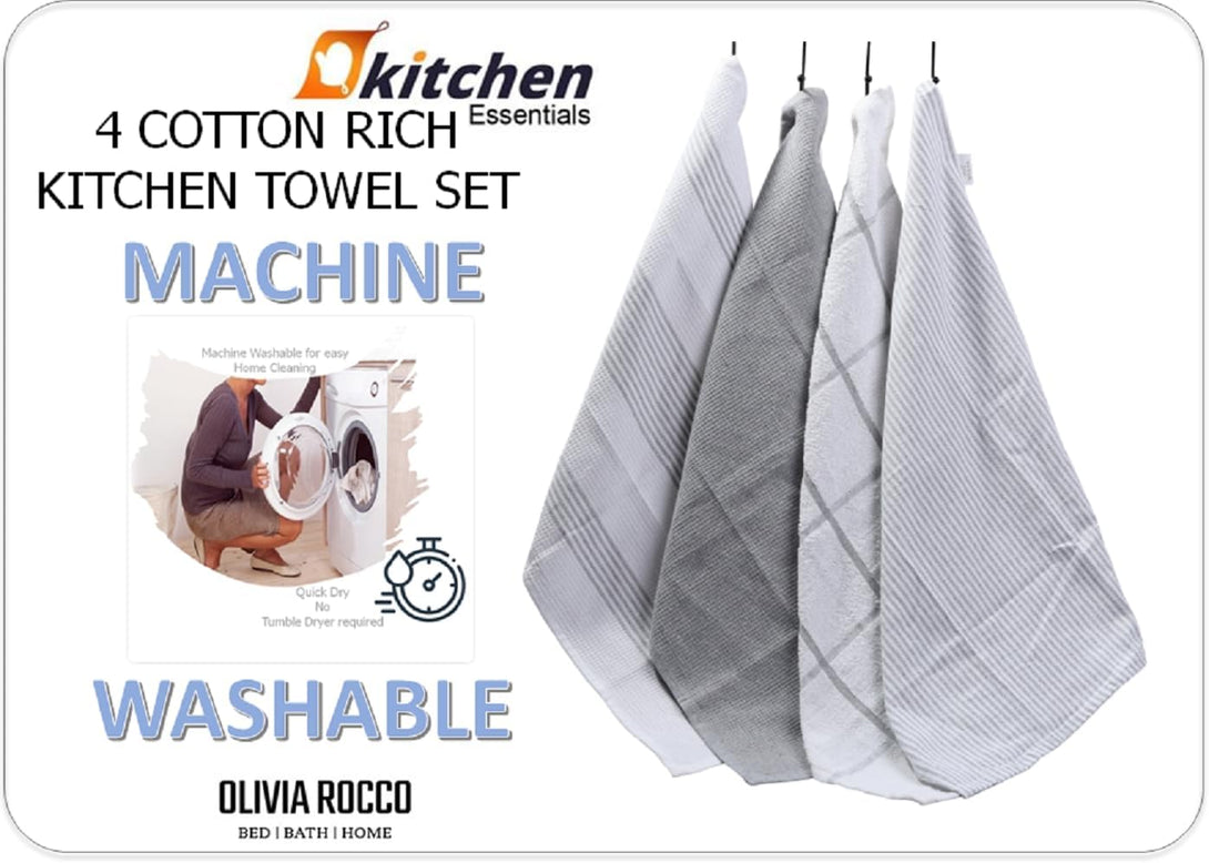 Choose OLIVIA ROCCO's Pack Of 4 Absorbent Long Lasting Tea Towels for their superior absorbency, stylish design, and long-lasting durability. Our tea towels are designed to make your kitchen chores easier and more efficient, all while adding a touch of elegance to your kitchen decor. Trust in the quality and performance of OLIVIA ROCCO products, which are built to stand the test of time and daily use.