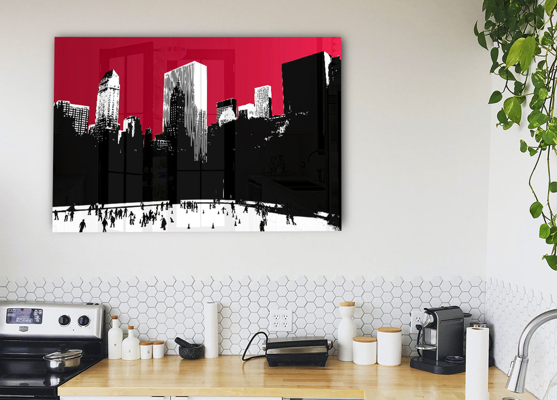 Painting The City Red acrylic print, UV printed onto 5mm thick acrylic glass. Comes with everything you need to hang on your wall.