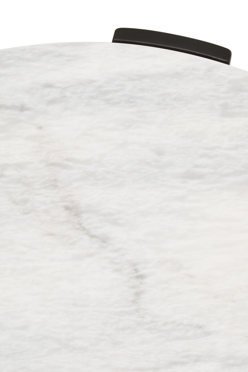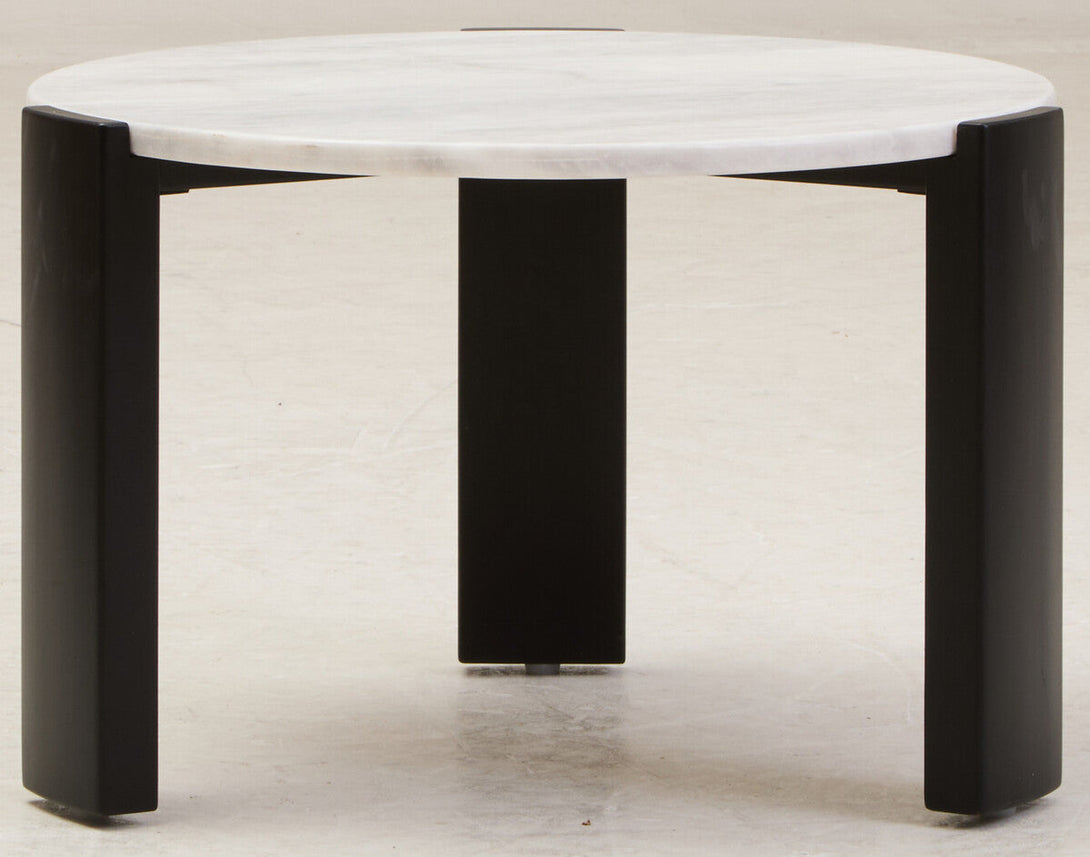 Refine your seating area with the Palermo Round White Marble Top Small Coffee Table, a compact centerpiece designed for modern living. The polished white marble top delivers a crisp, gallery-like finish with delicate grey veining, while the contrasting black base adds architectural definition.
