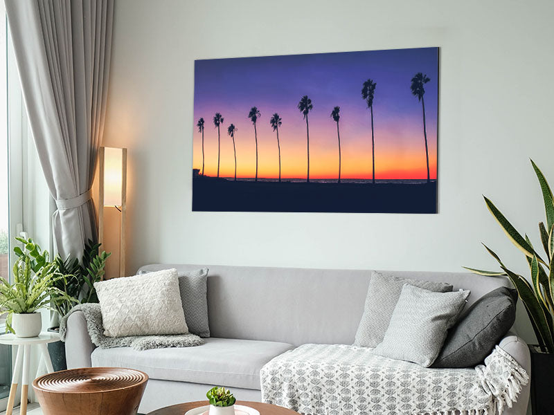 Palm Tree LineUp Printed on brushed aluminium dibond. A modern way to display art and easy to maintain.