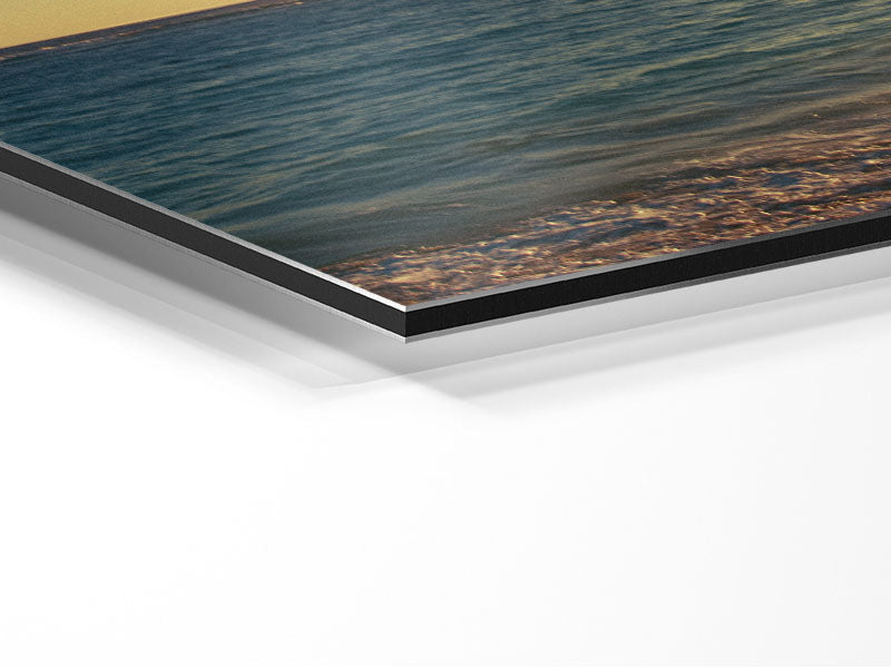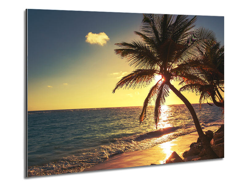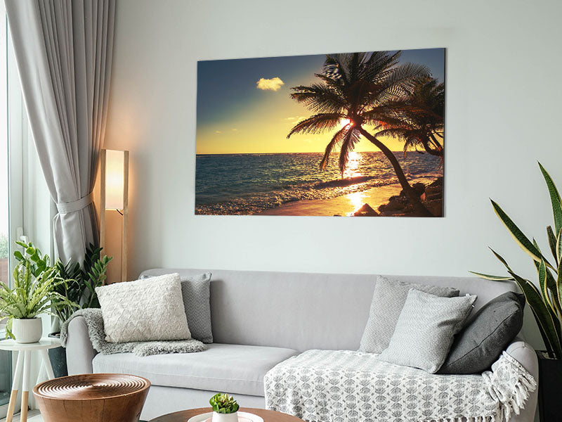 Palm tree paradise at dusk Printed on brushed aluminium dibond. A modern way to display art and easy to maintain.