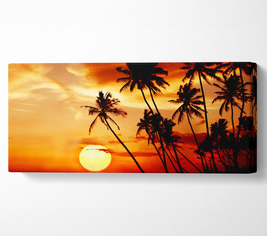 Picture of Palm Tree Paradise At Sunset Panoramic Canvas Wall Art