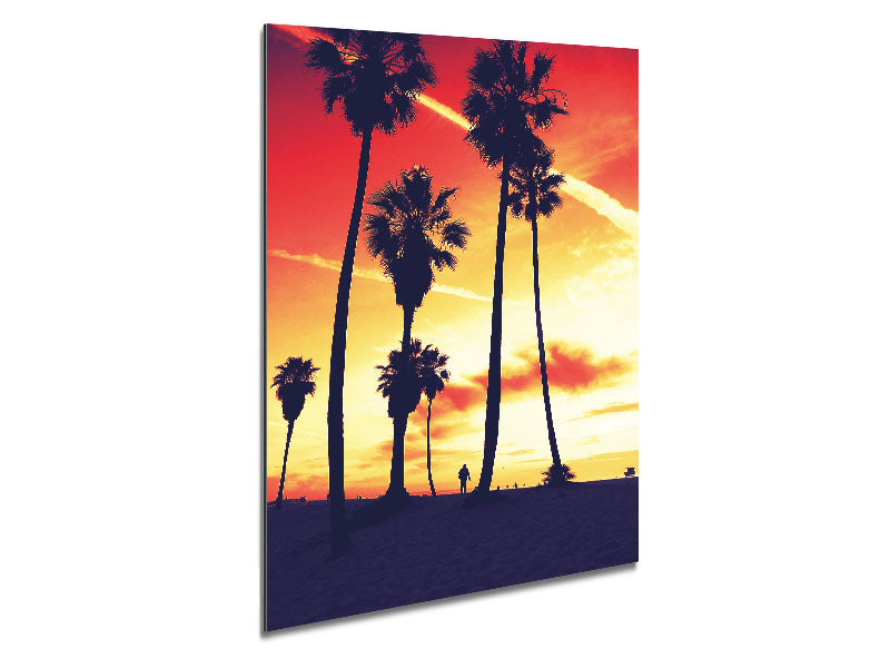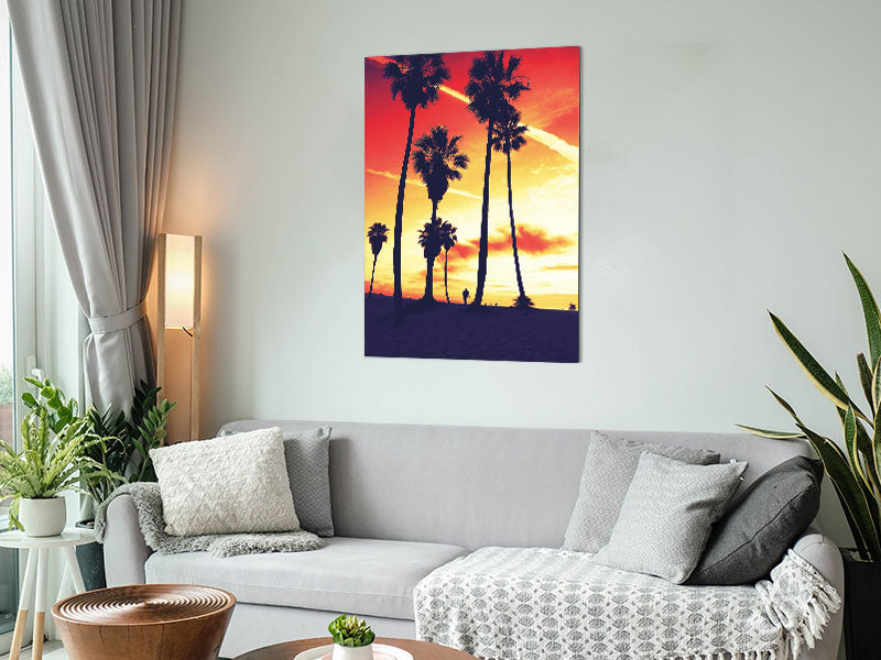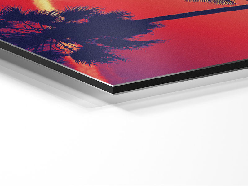 Palm Tree Sunset Printed on brushed aluminium dibond. A modern way to display art and easy to maintain.