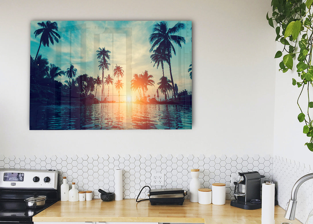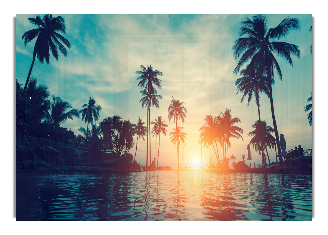 Palm Tree Waters acrylic print, UV printed onto 5mm thick acrylic glass. Comes with everything you need to hang on your wall.