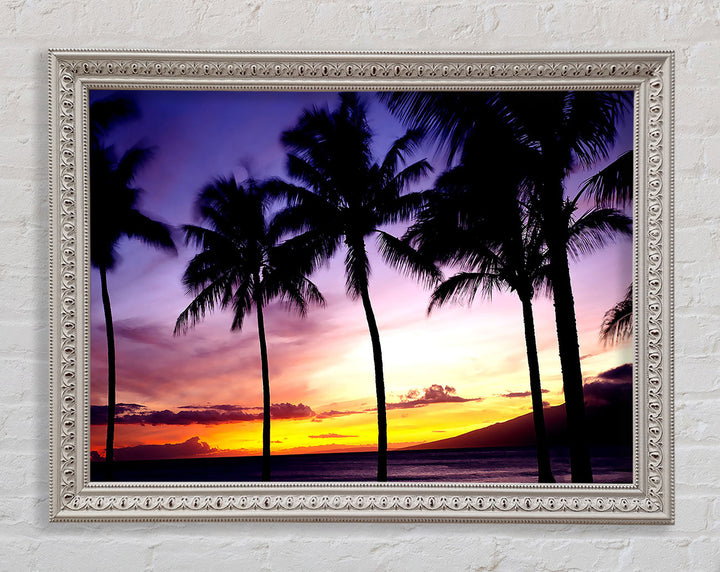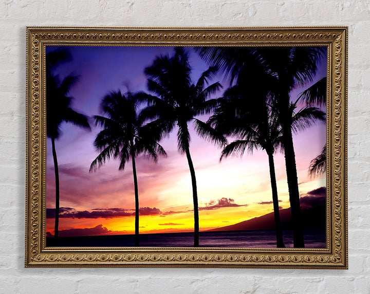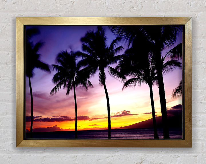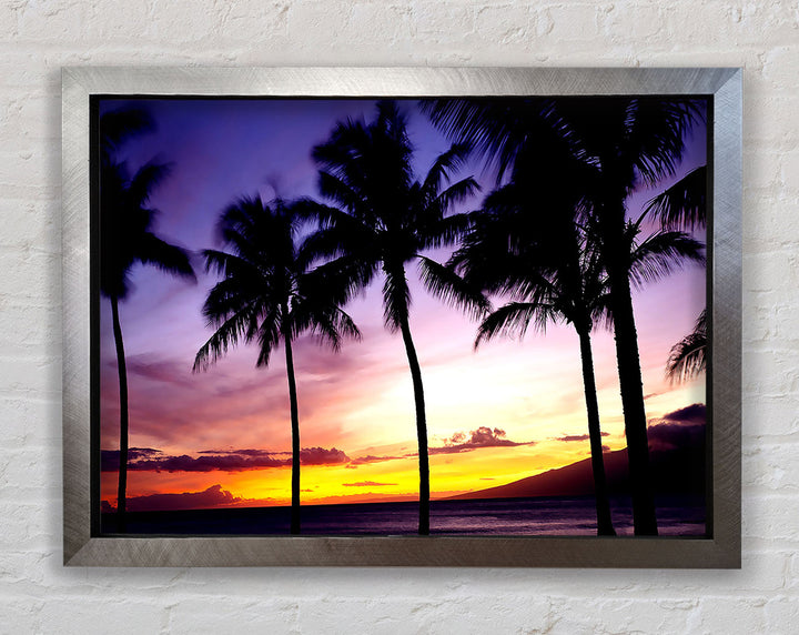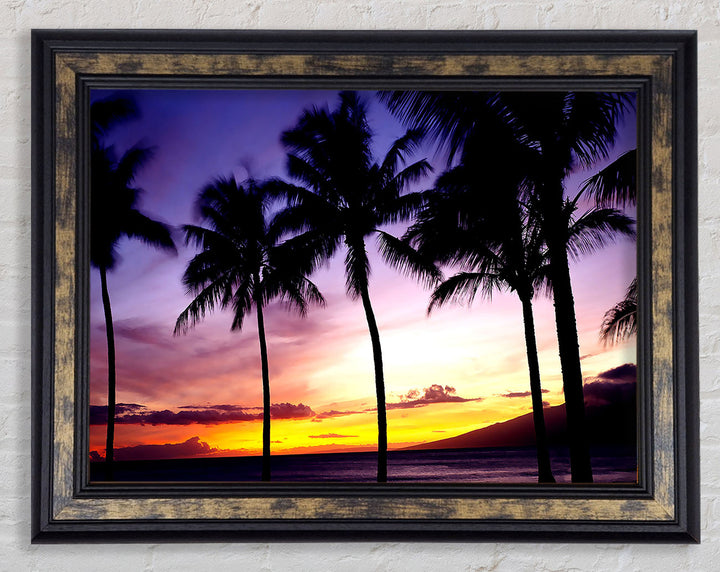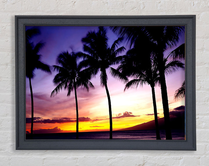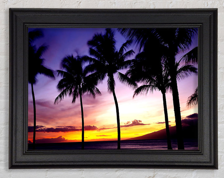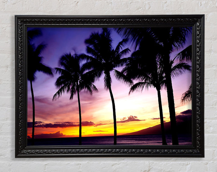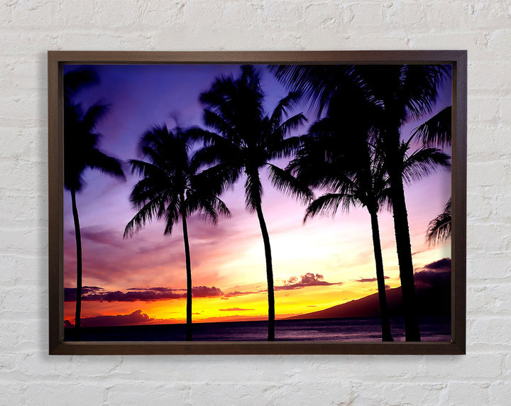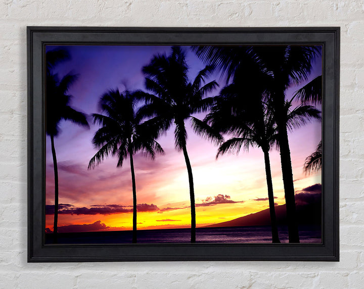 Bring the serene beauty of a tropical paradise into your home with our Palm Trees Sunset Framed Print. This exquisite piece of framed art captures the stunning view of palm trees silhouetted against a vibrant sunset, perfect for adding a touch of tranquility to any room. Available in six sizes ranging from small to oversized, this print fits any space, whether it's a cozy nook or a spacious living area. Choose from a variety of colors to match your décor. Each item is meticulously handmade in the United Kingdom, ensuring top-notch quality. Plus, it comes ready to hang, making it easy to transform your space instantly. Enjoy the calming vibes and elegance this framed art brings to your home.