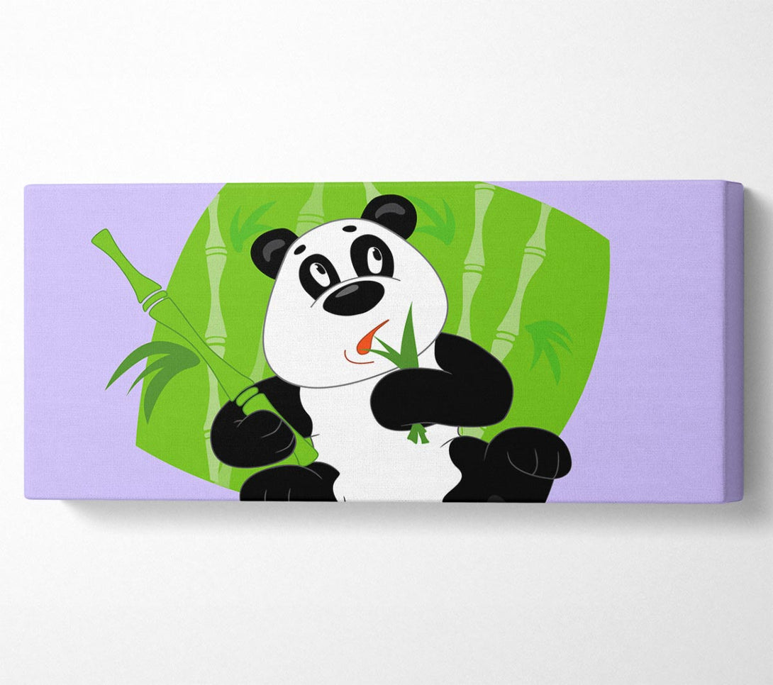 Picture of Panda Eating Bamboo Lilac Panoramic Canvas Wall Art