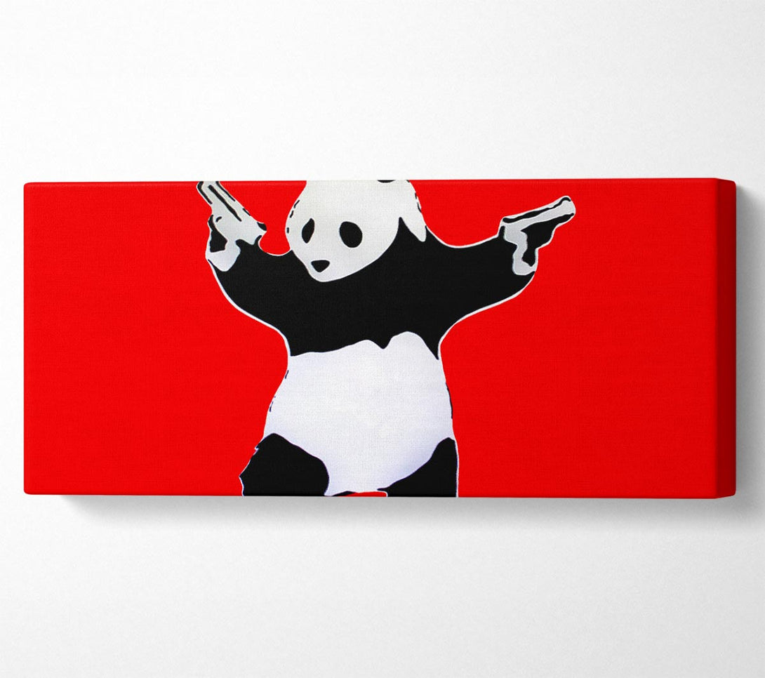 Picture of Panda Hold-Up Red Panoramic Canvas Wall Art