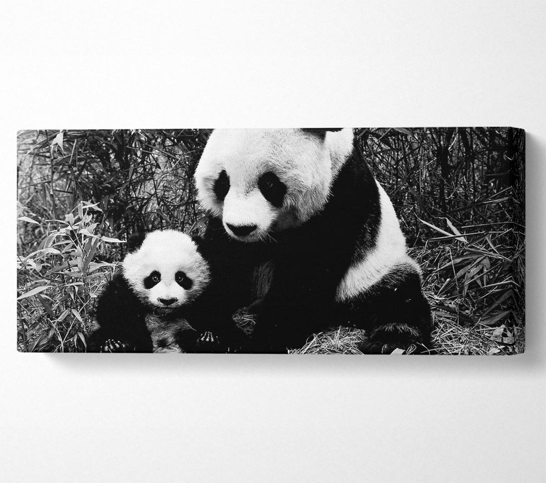 Panda Mother And Baby canvas, printed on coated polyester canvas. Mounted on to a 44mm box frame, ready to hang.