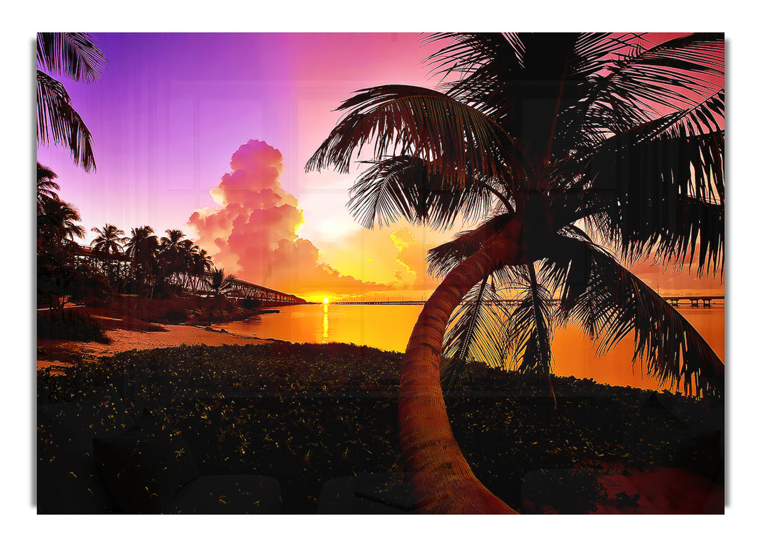Paradise Beach At Sunset acrylic print, UV printed onto 5mm thick acrylic glass. Comes with everything you need to hang on your wall.