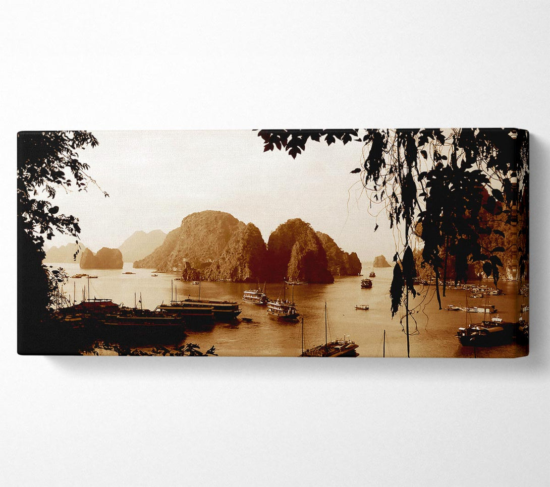 Paradise Beyond Sepia canvas, printed on coated polyester canvas. Mounted on to a 44mm box frame, ready to hang.