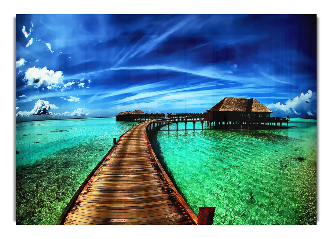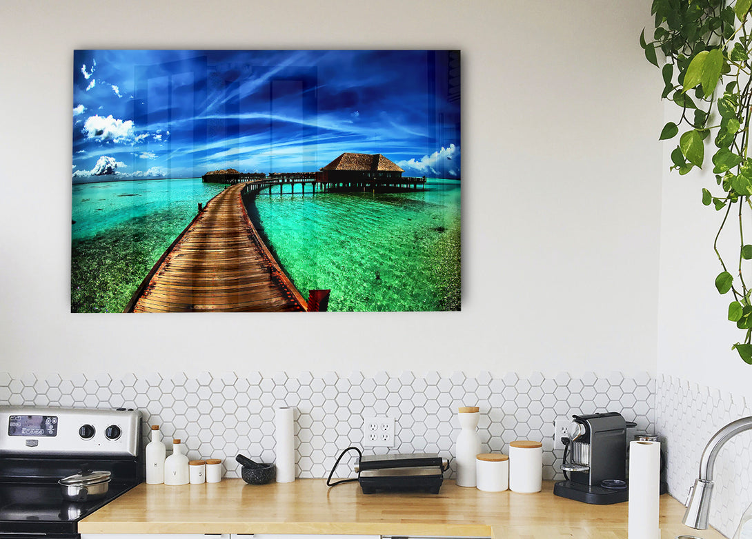Paradise Hideaway Seascape Canvasb acrylic print, UV printed onto 5mm thick acrylic glass. Comes with everything you need to hang on your wall.
