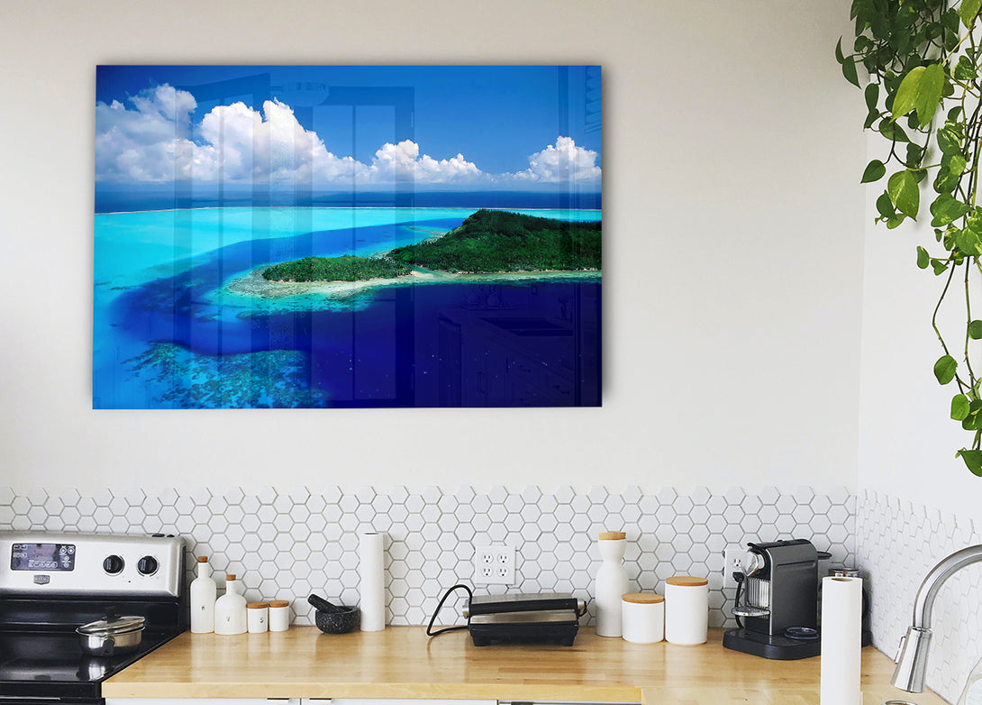Paradise Island From Above Seascape Canvasb acrylic print, UV printed onto 5mm thick acrylic glass. Comes with everything you need to hang on your wall.