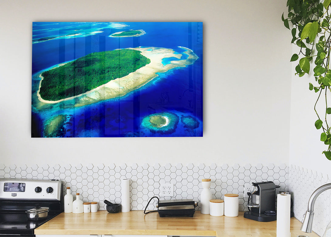 Paradise Islands acrylic print, UV printed onto 5mm thick acrylic glass. Comes with everything you need to hang on your wall.