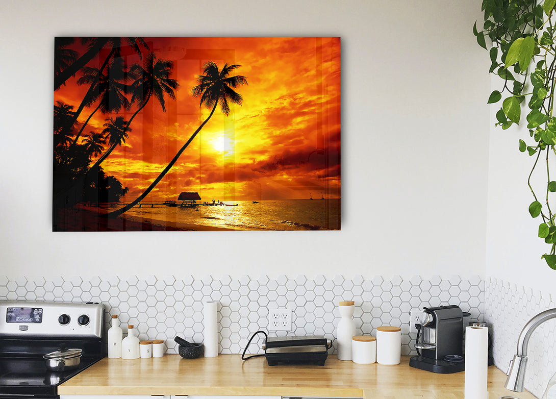 Paradise Palm Tree Hut acrylic print, UV printed onto 5mm thick acrylic glass. Comes with everything you need to hang on your wall.