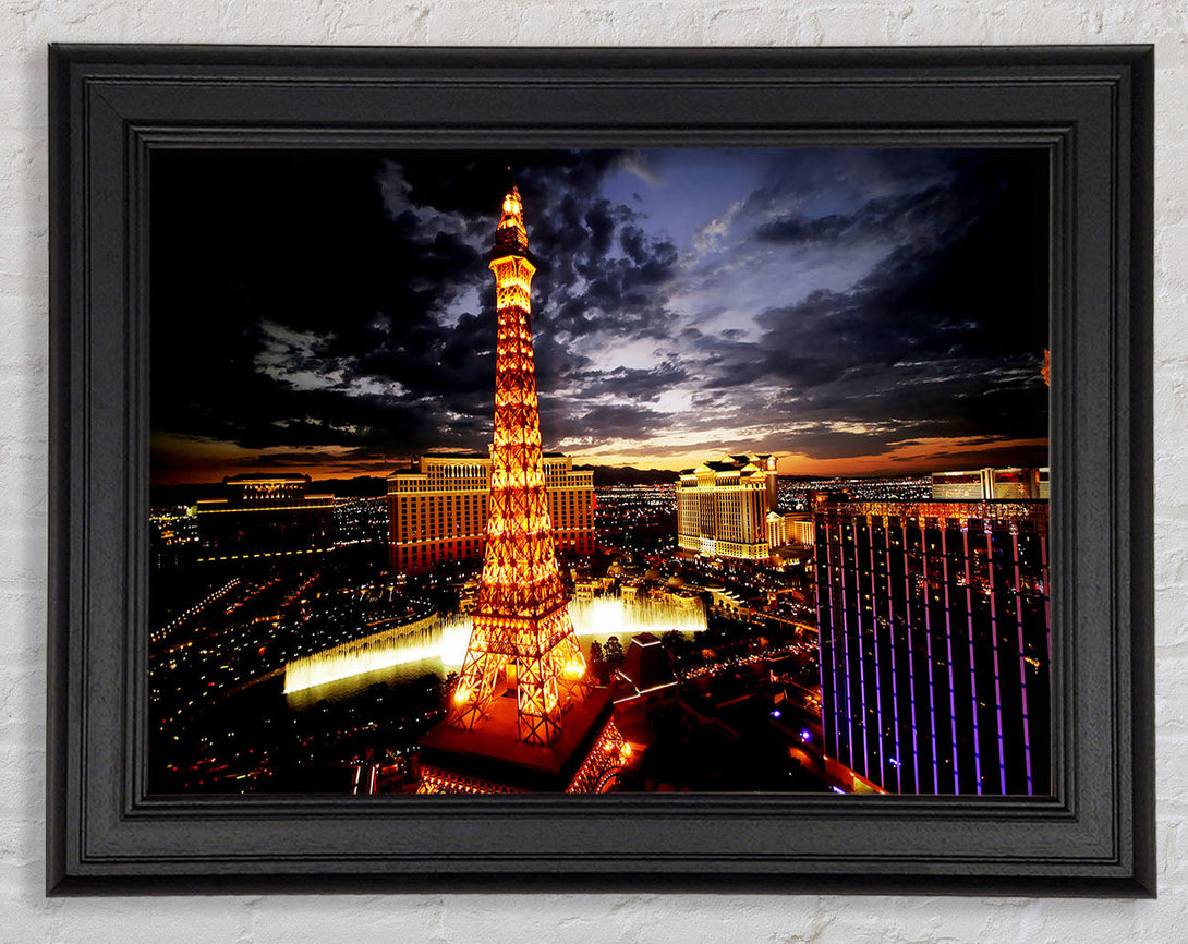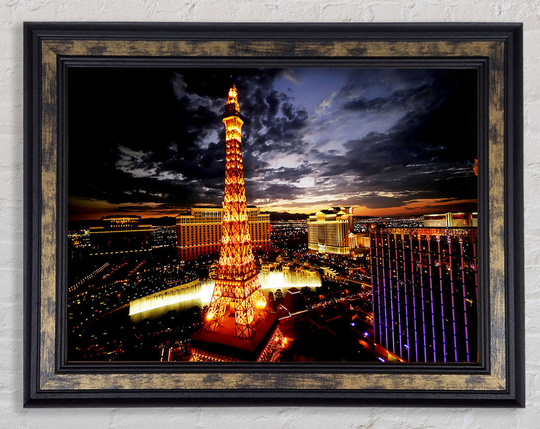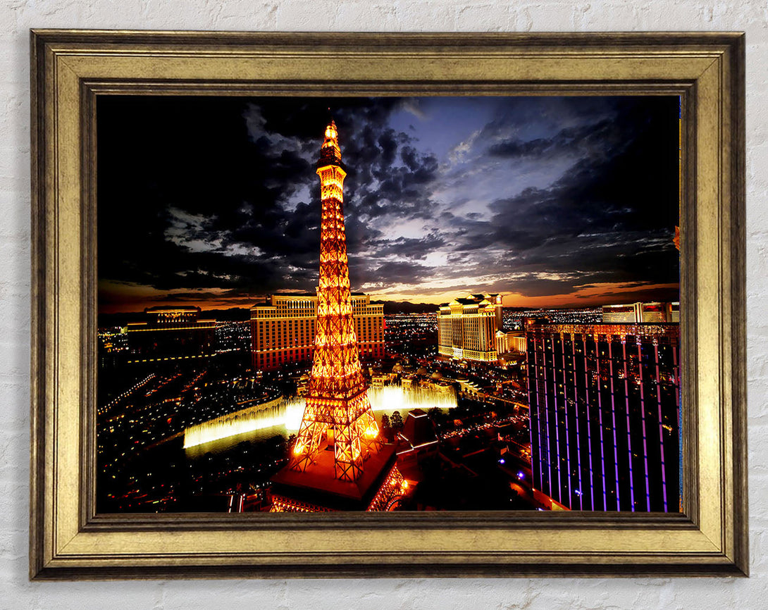 Paris Eiffel Tower Golden Night Glow Framed Print