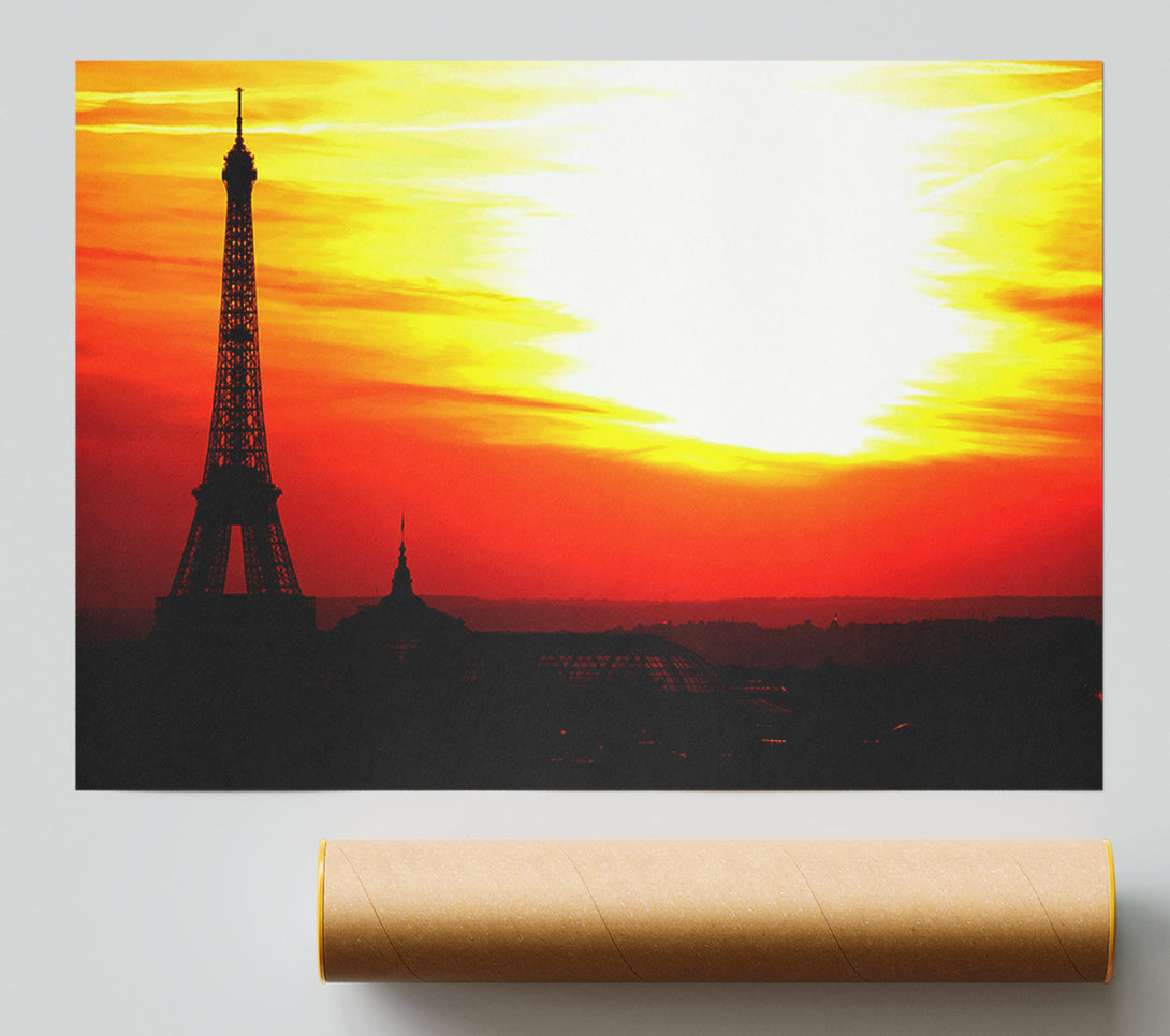 Paris Eiffel Tower Sun Blaze Poster