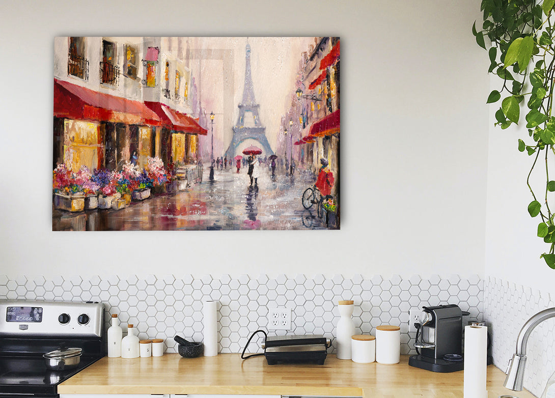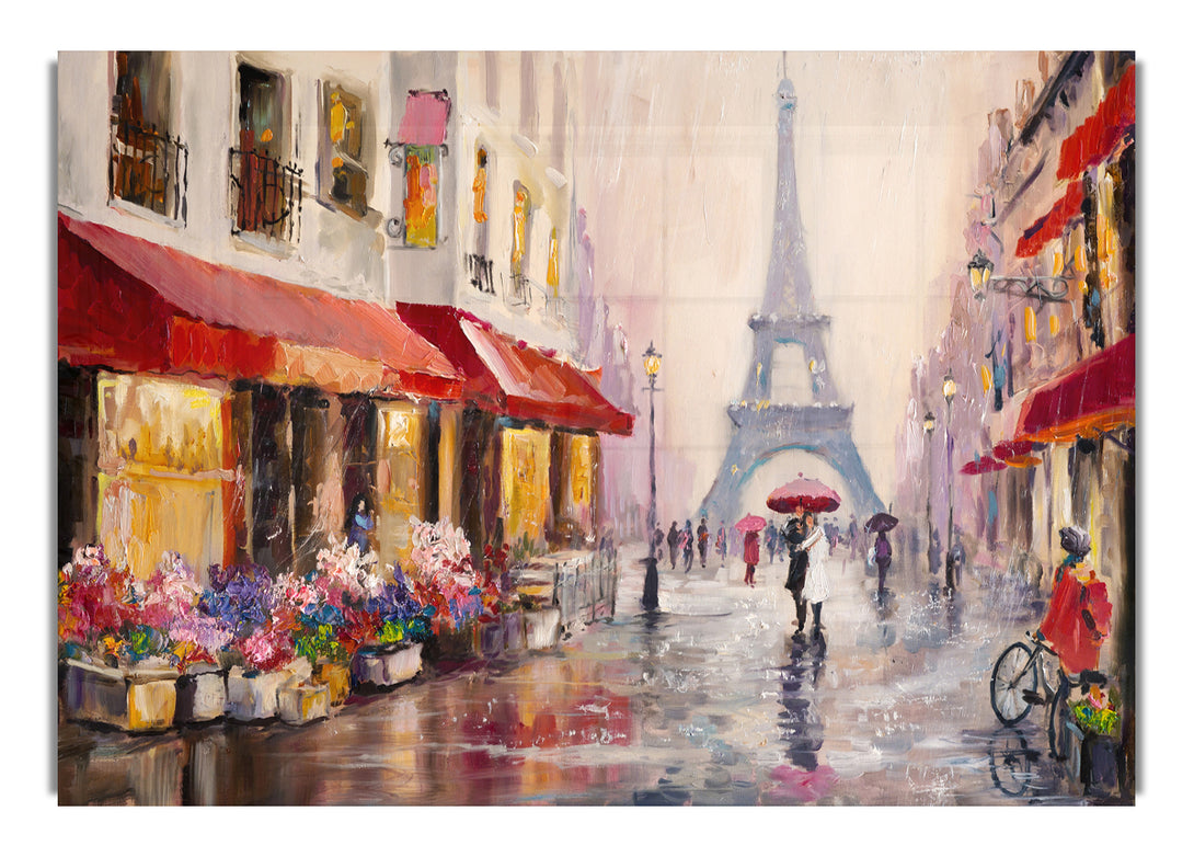 Paris Streets acrylic print, UV printed onto 5mm thick acrylic glass. Comes with everything you need to hang on your wall.
