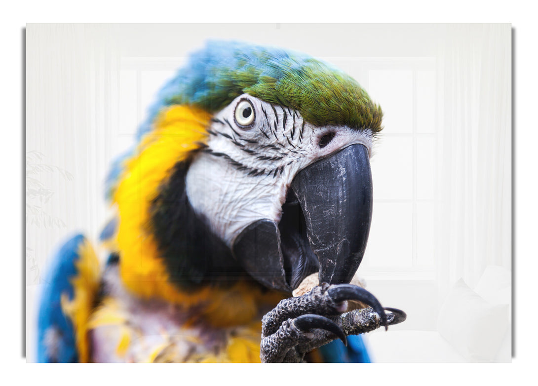 Parrot Care acrylic print, UV printed onto 5mm thick acrylic glass. Comes with everything you need to hang on your wall.