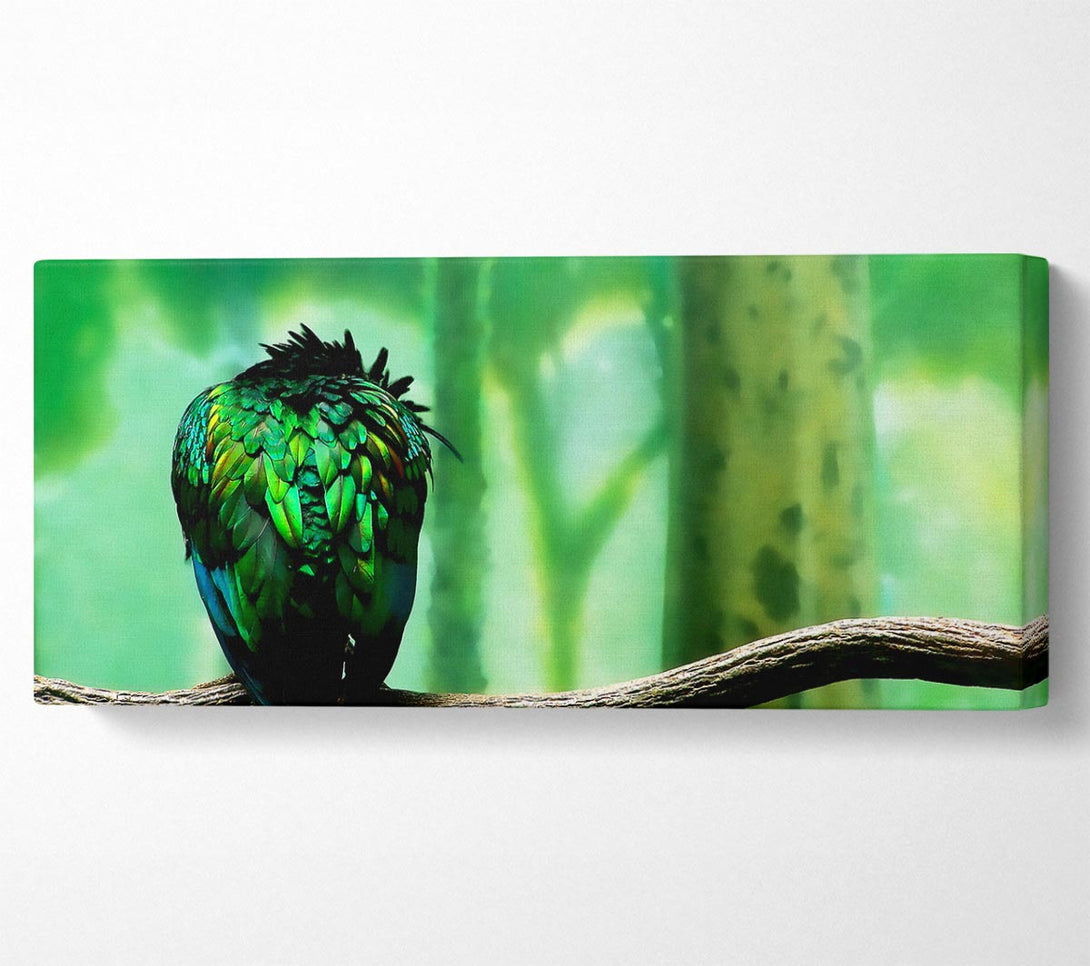 Parrot Perch canvas, printed on coated polyester canvas. Mounted on to a 44mm box frame, ready to hang.