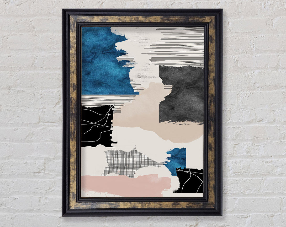 Patchwork Blue Walnut And Walnut Framed Print
