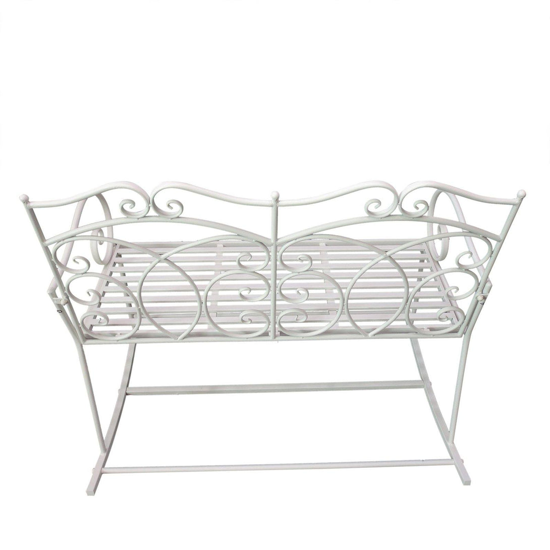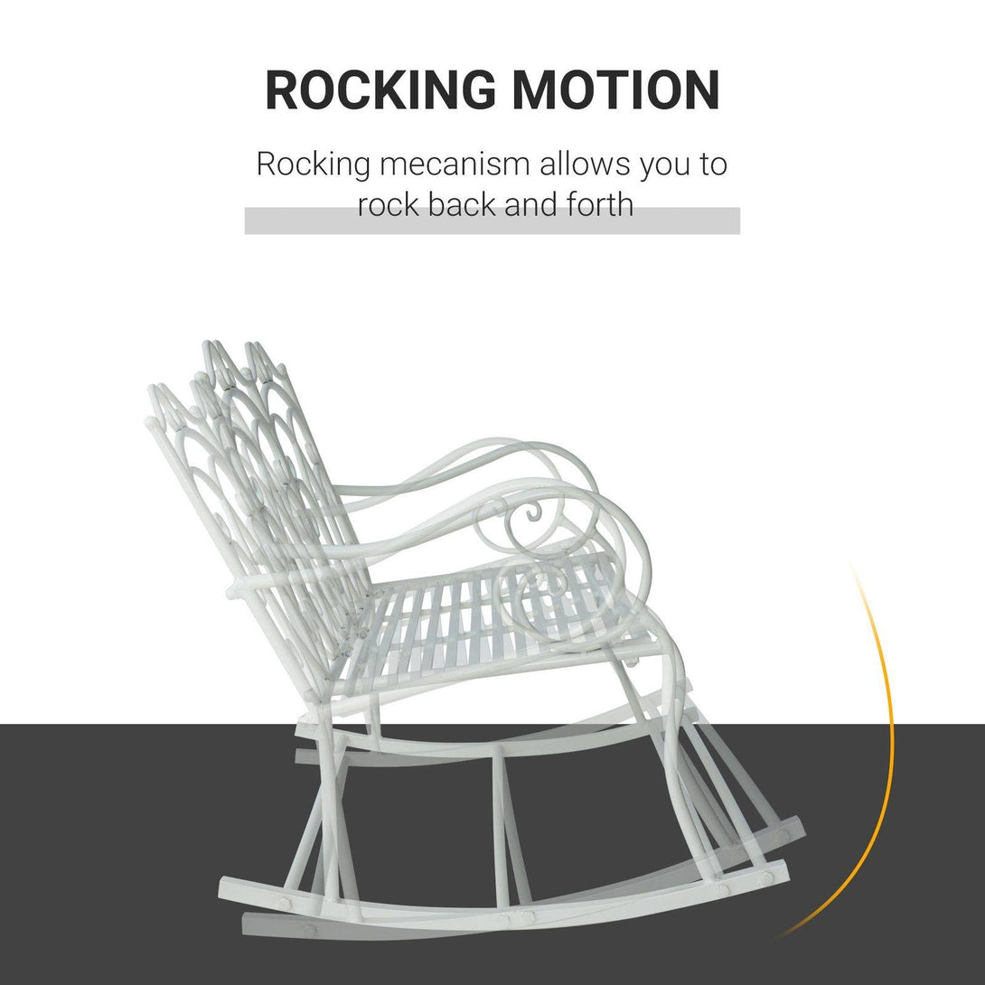 Patio 2 Seater Rocking Bench Steel Garden Outdoor Garden Loveseat Chair With Decorative Backrest White
