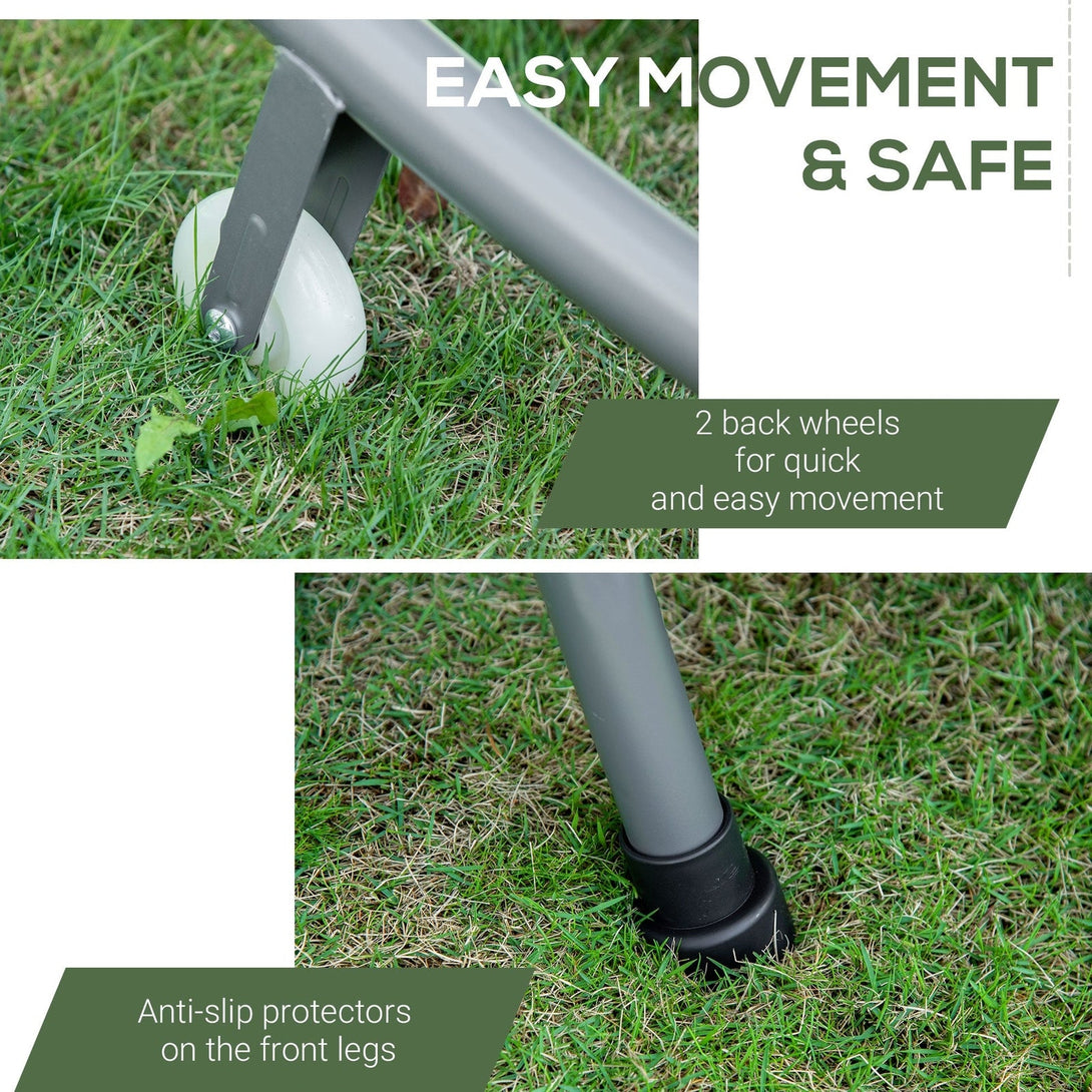A modern minimal designed, weather-resistant double hammock bed from Outsunny. Constructed from durable metal frame and oxford fabric polyester offering the desired durability for long terms use. The detachable and adjustable canopy helps provide the correct direction of shade, every time. The 2 wheel design offers the flexible movement and replacement of the bed to enjoy your outdoor space.