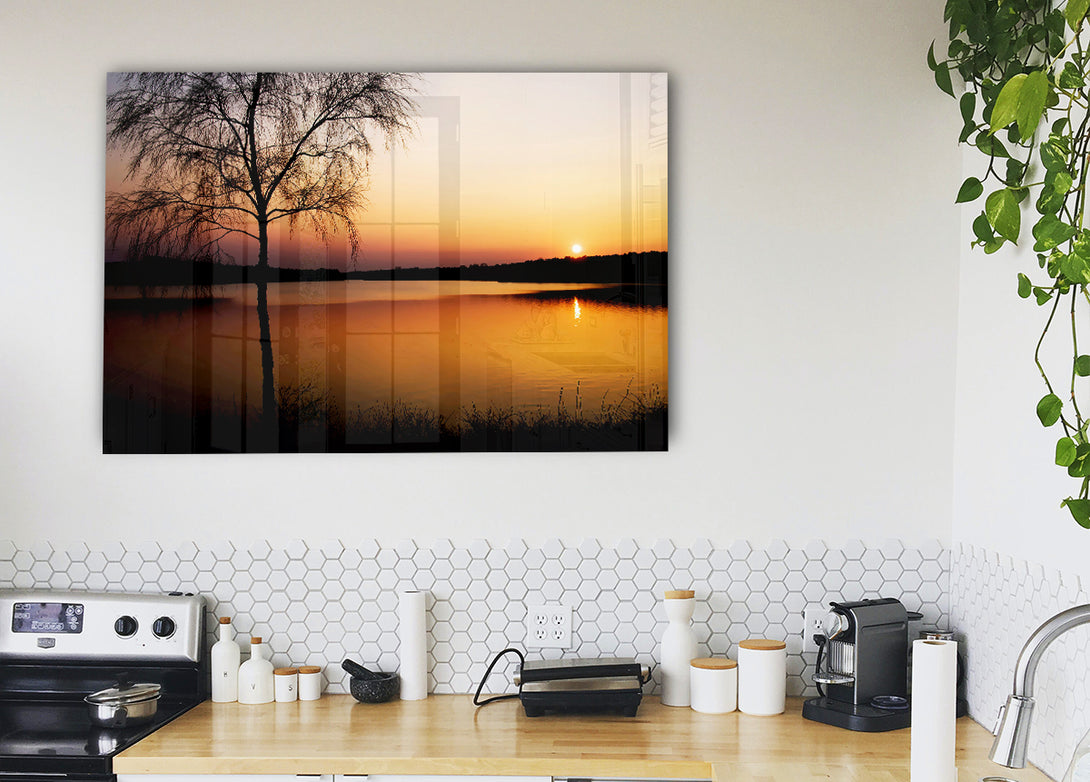 Peaceful Lake At Dawn acrylic print, UV printed onto 5mm thick acrylic glass. Comes with everything you need to hang on your wall.