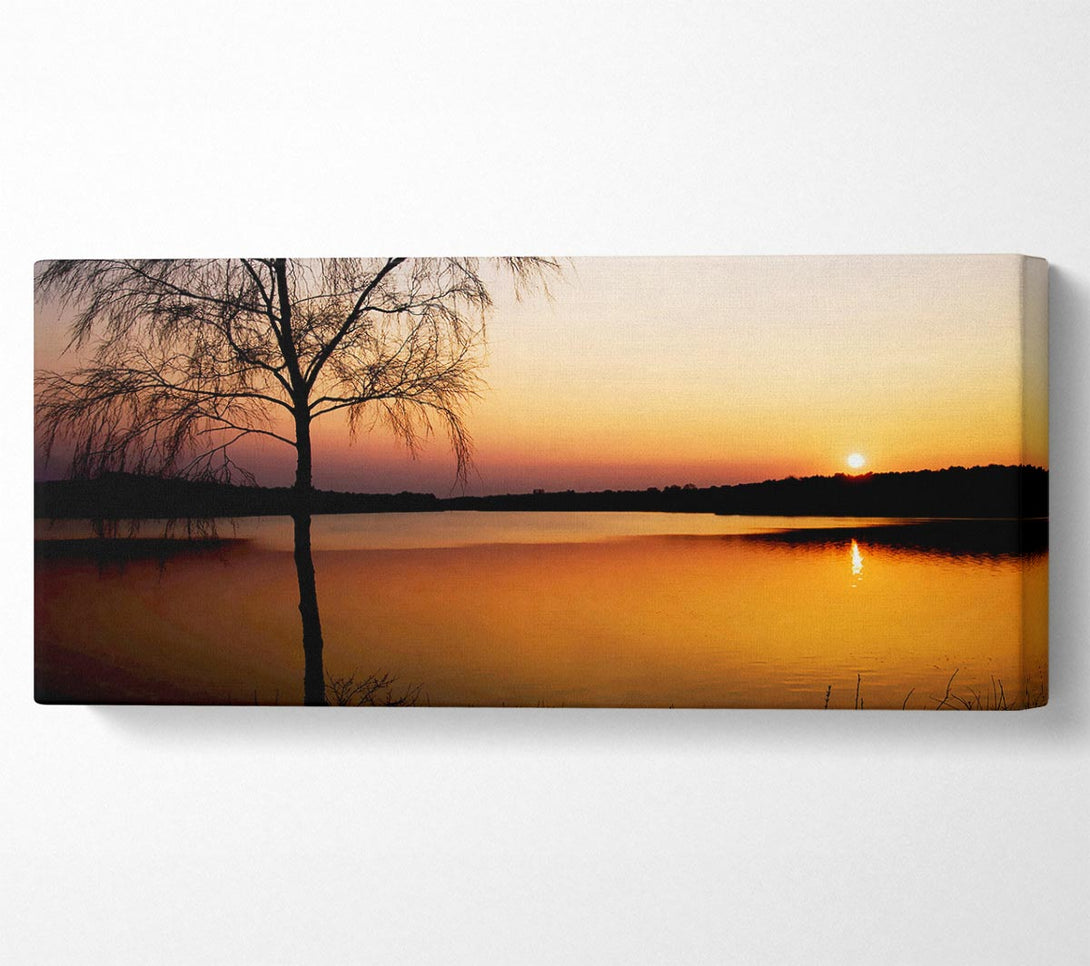 Picture of Peaceful Lake At Dawn Panoramic Canvas Wall Art