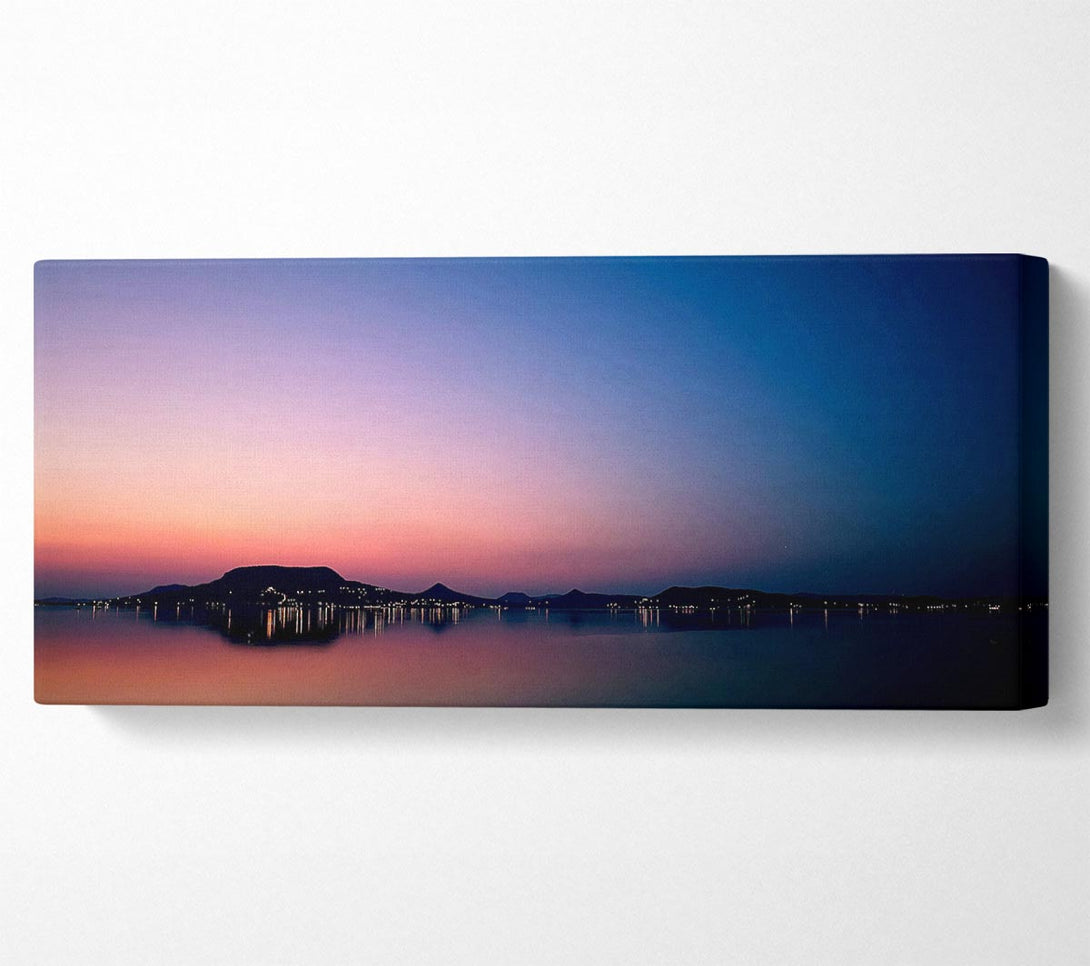 Peaceful Lake canvas, printed on coated polyester canvas. Mounted on to a 44mm box frame, ready to hang.