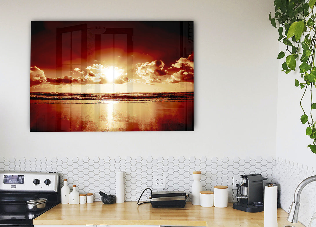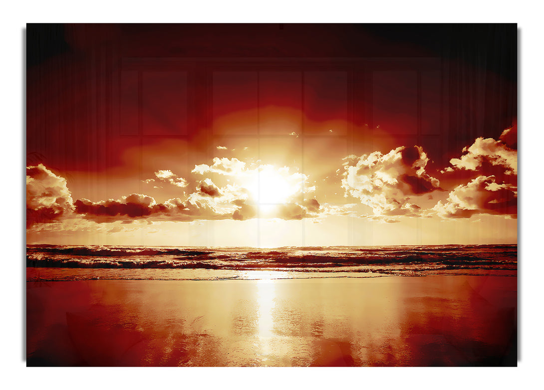 Peach Ocean Sunrise acrylic print, UV printed onto 5mm thick acrylic glass. Comes with everything you need to hang on your wall.
