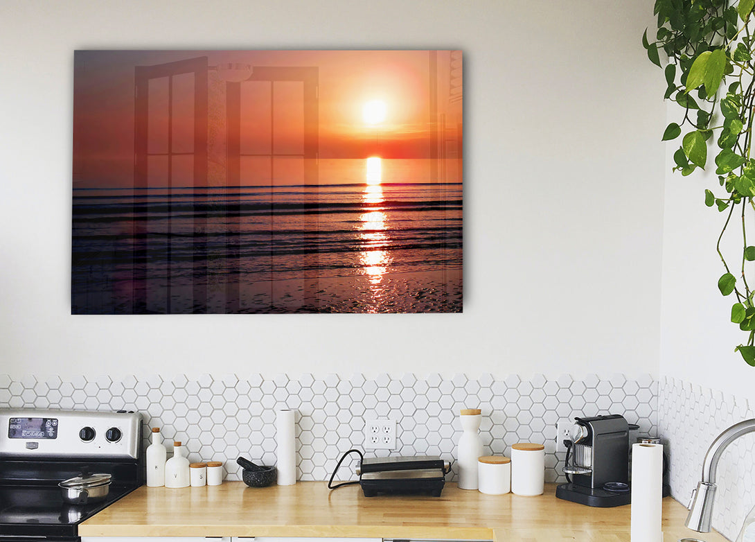Peach Sun Reflection acrylic print, UV printed onto 5mm thick acrylic glass. Comes with everything you need to hang on your wall.