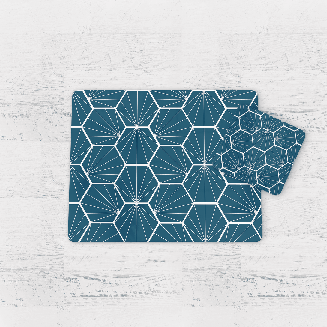 The blue hexagon placemat collection is available either as a single placemat or as a set of 4 or 6.