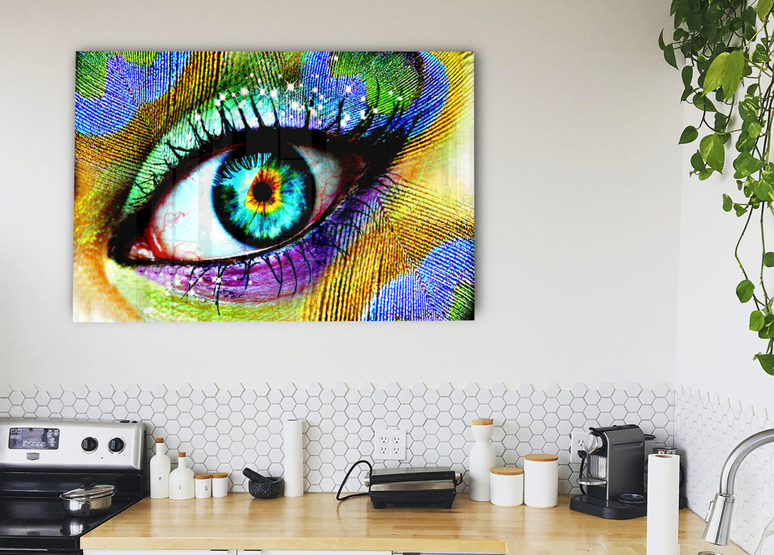 Peacock Eye Modern Canvasb L acrylic print, UV printed onto 5mm thick acrylic glass. Comes with everything you need to hang on your wall.