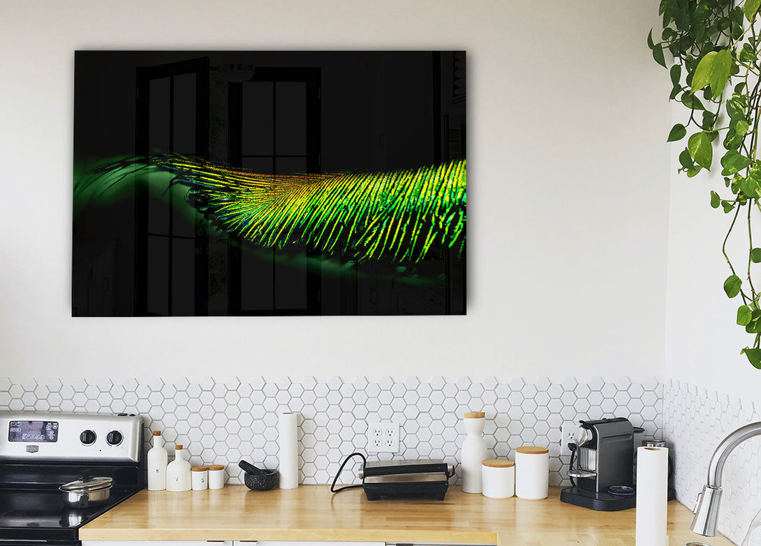 Peacock Feather 02 acrylic print, UV printed onto 5mm thick acrylic glass. Comes with everything you need to hang on your wall.