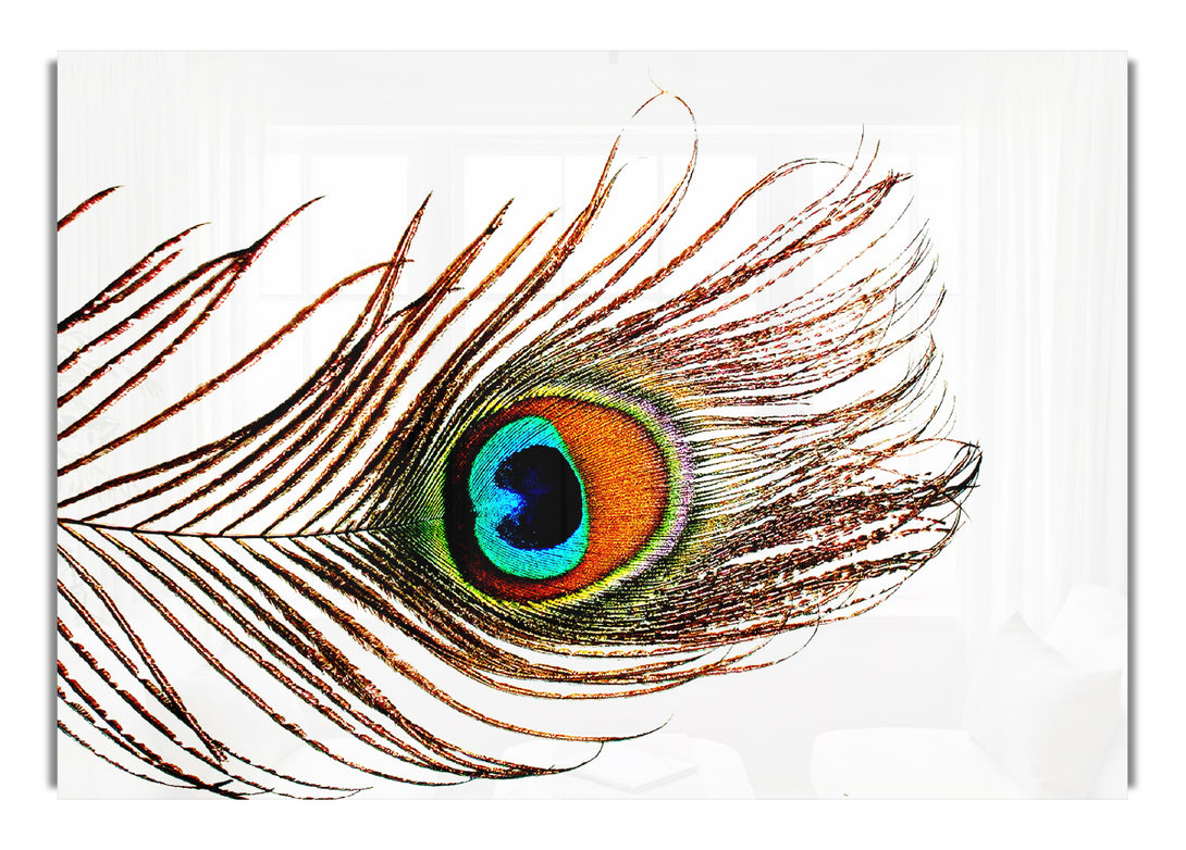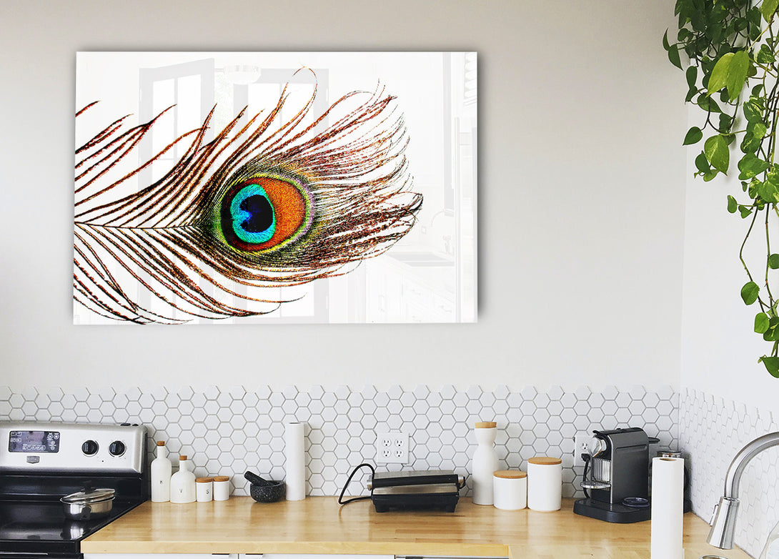 Peacock Feather acrylic print, UV printed onto 5mm thick acrylic glass. Comes with everything you need to hang on your wall.