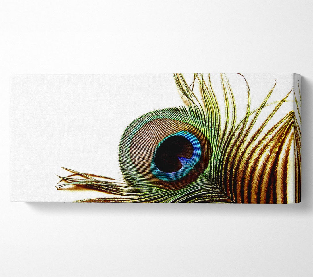 Peacock Feather Close-Up canvas, printed on coated polyester canvas. Mounted on to a 44mm box frame, ready to hang.