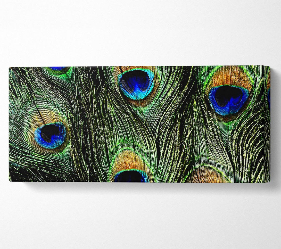 Picture of Peacock Feather Eyes Panoramic Canvas Wall Art