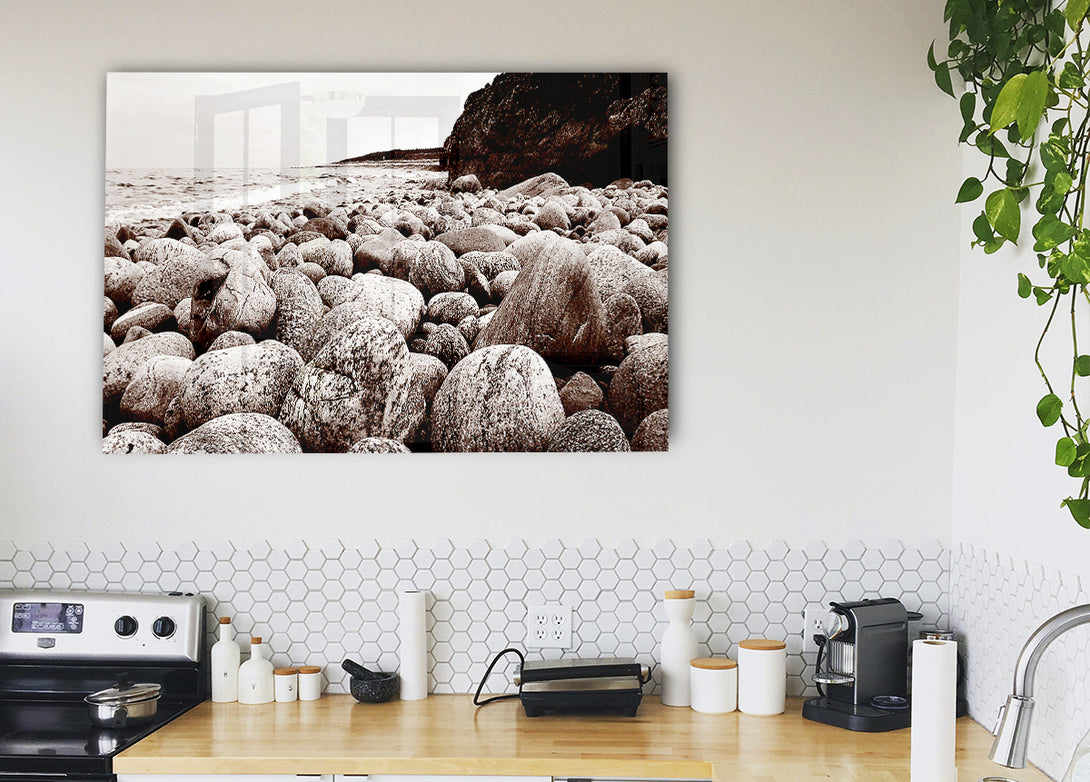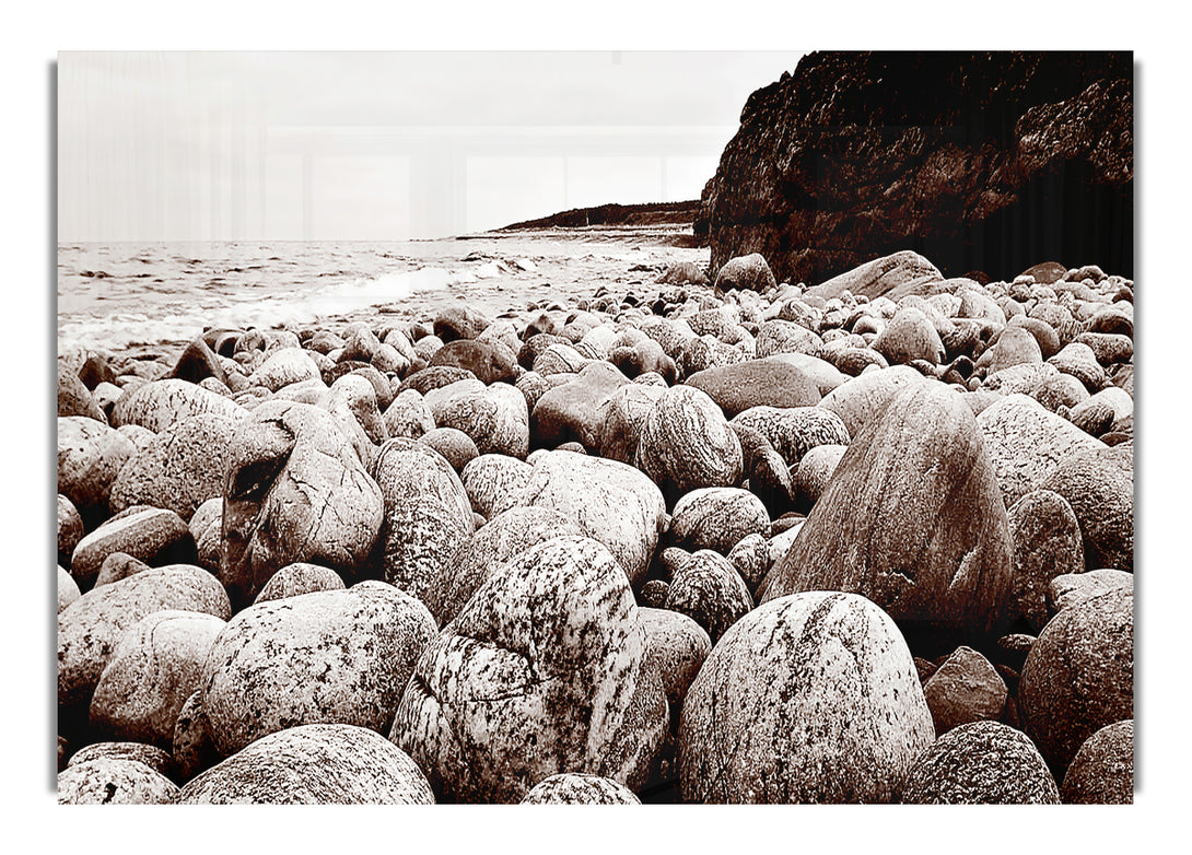 Pebbles Of The Ocean B~w acrylic print, UV printed onto 5mm thick acrylic glass. Comes with everything you need to hang on your wall.