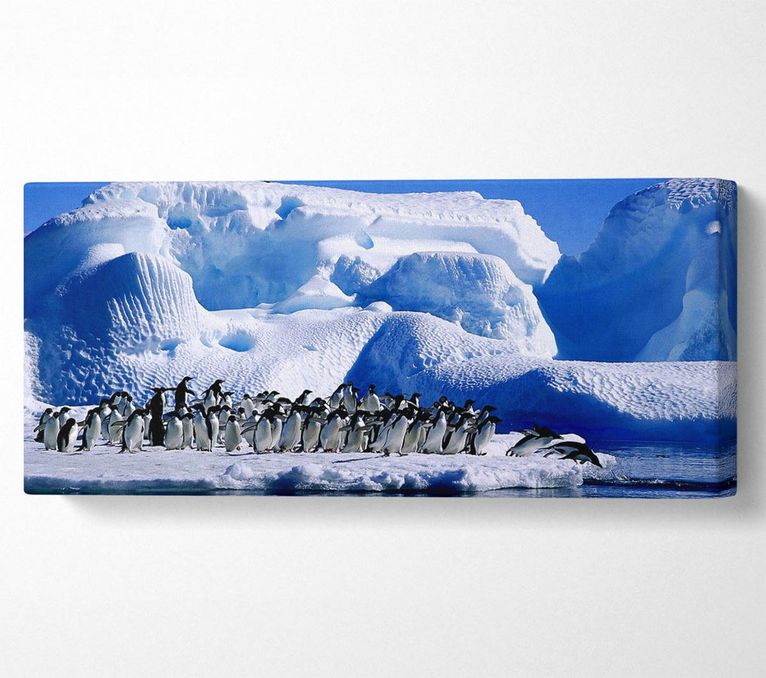 Picture of Penguins First Dive Panoramic Canvas Wall Art