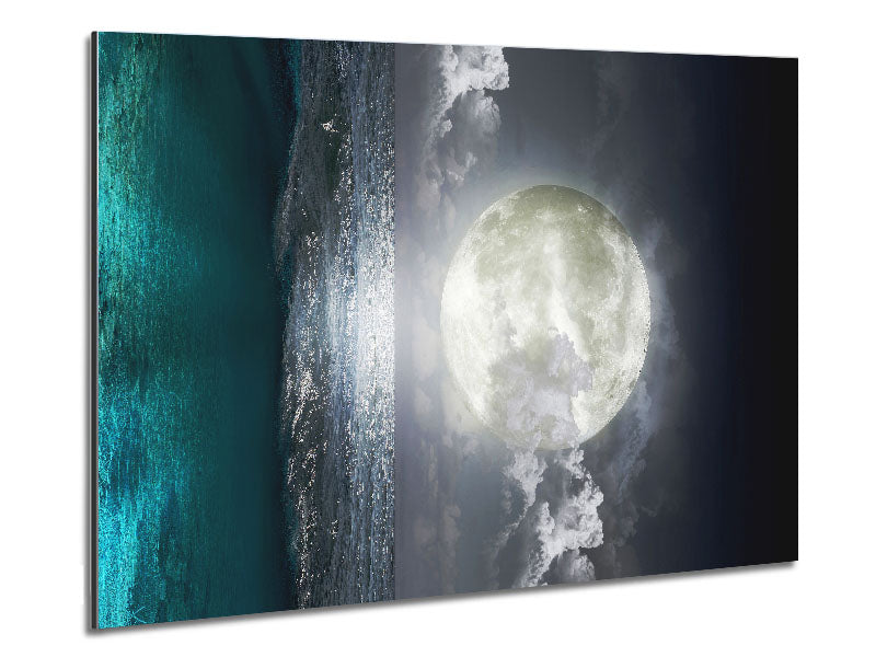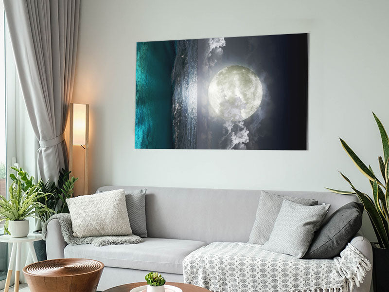 Perfect Moon Ocean Printed on brushed aluminium dibond. A modern way to display art and easy to maintain.