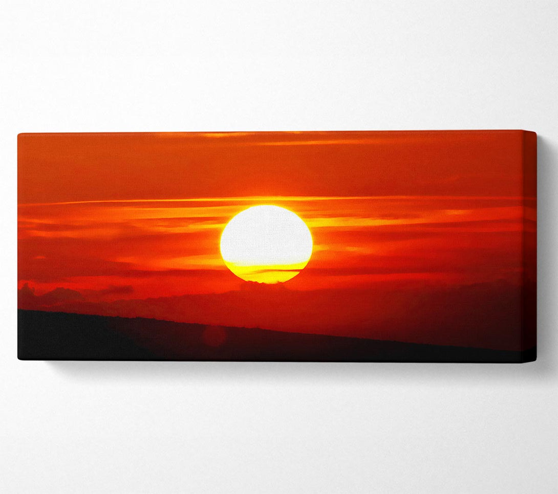 Perfect Orange Sun canvas, printed on coated polyester canvas. Mounted on to a 44mm box frame, ready to hang.