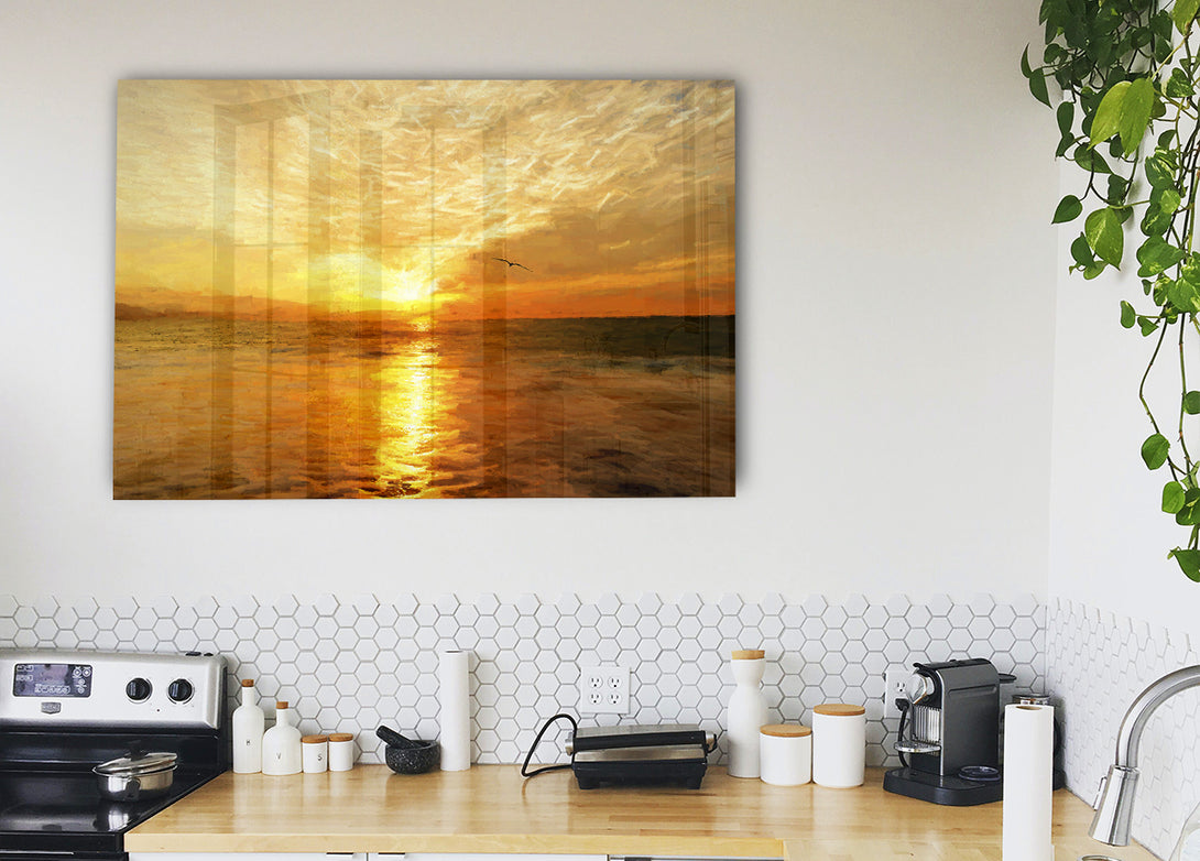 Perfect Sunset Ocean acrylic print, UV printed onto 5mm thick acrylic glass. Comes with everything you need to hang on your wall.