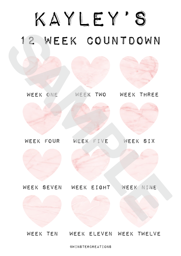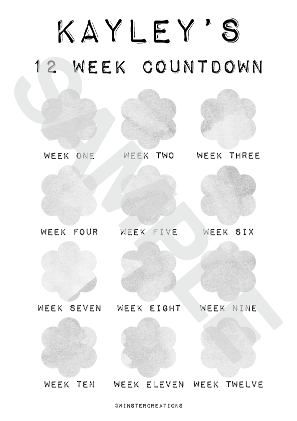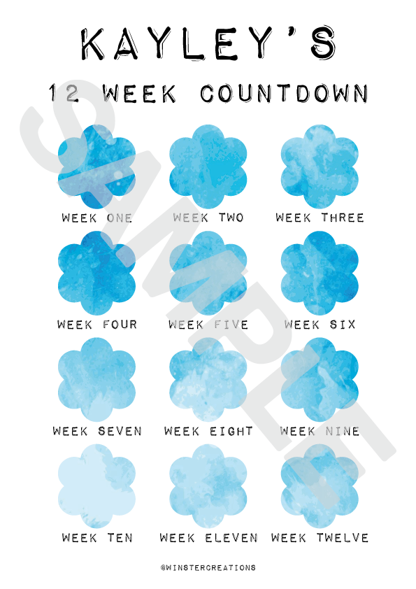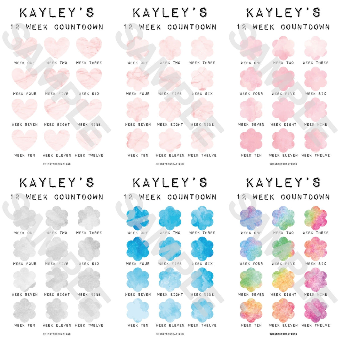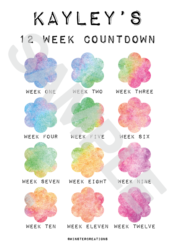 Personalised A4 Any Name 12 Week Countdown Weight Loss Chart Tracker Print - Assorted Designs - Laminated With Drywipe Pen