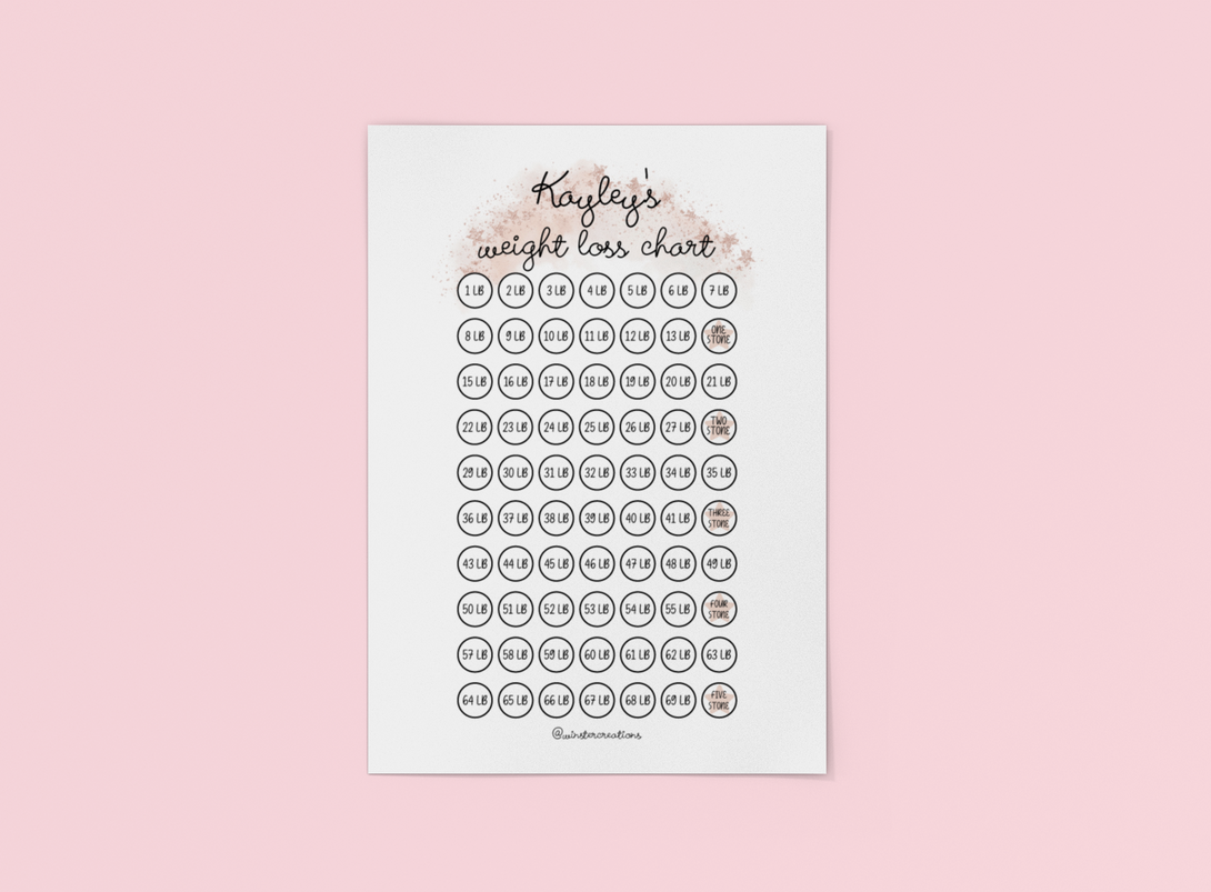 PERSONALISATIONIf you would like to personalise your weight loss chart, simply enter your name in the customisation box, and we'll make sure your chart is uniquely yours. Perfect for individuals who are serious about tracking their weight loss journey!