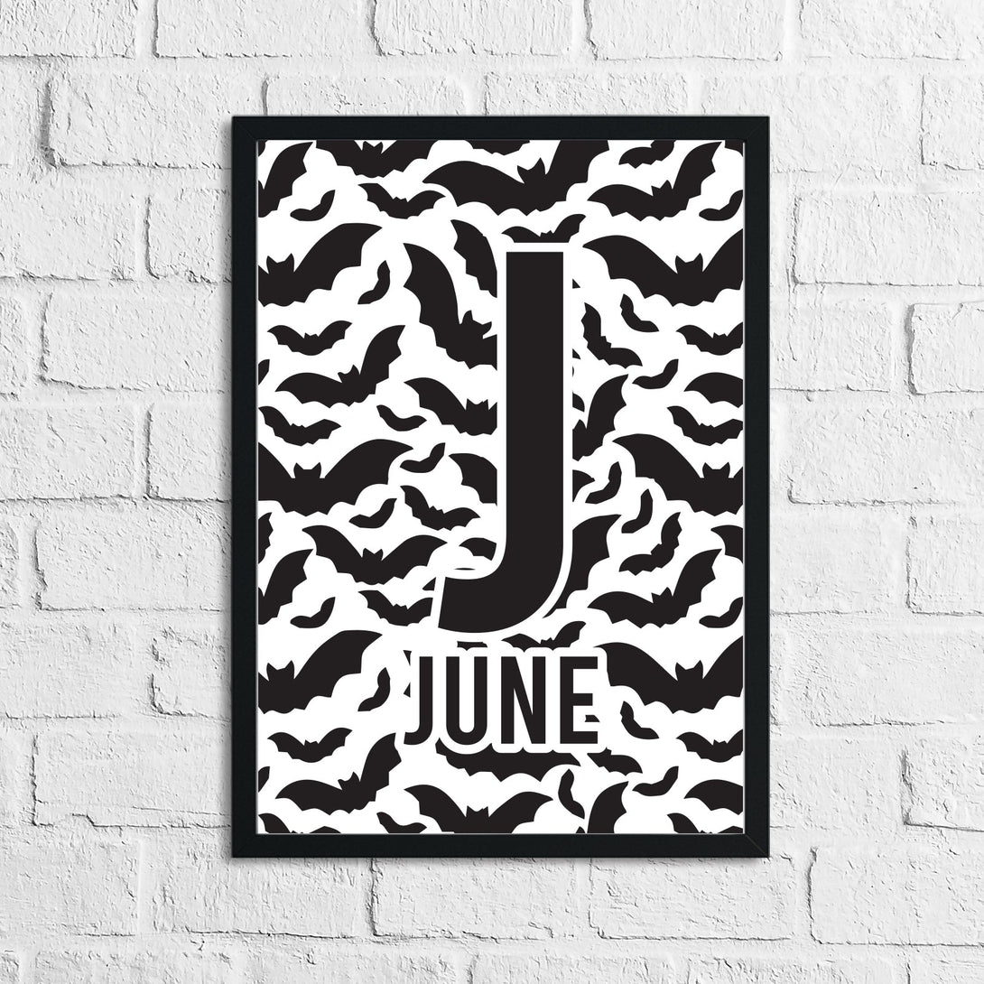 Personalised Bat Halloween Name Children's Room Wall Decor Print