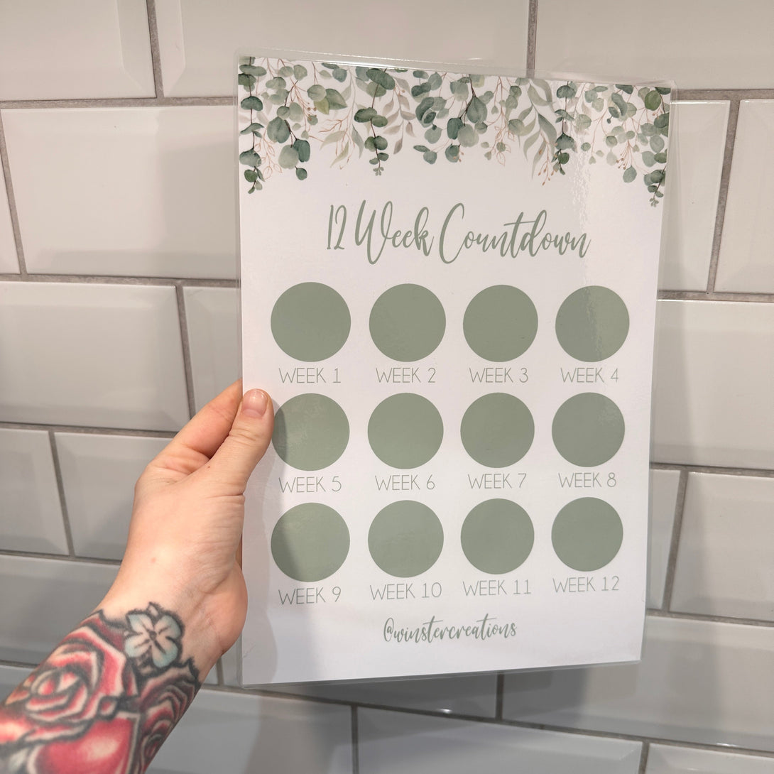 Personalised Eucalyptus Greenery 12 Week Countdown A4 Weight Loss Diet Slimming Chart Tracker Print - Laminated With Drywipe Pen