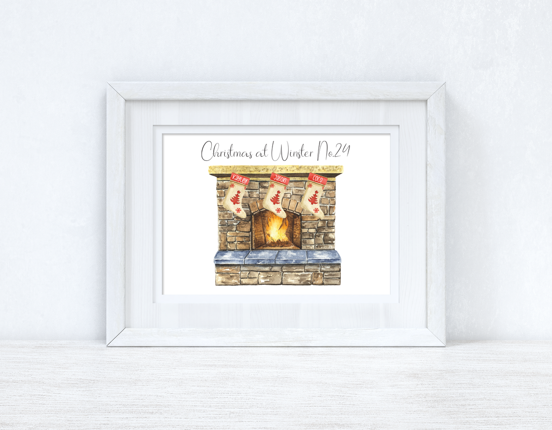 Personalised Fireplace Custom Name Stocking Christmas Seasonal Wall Home Decor Print